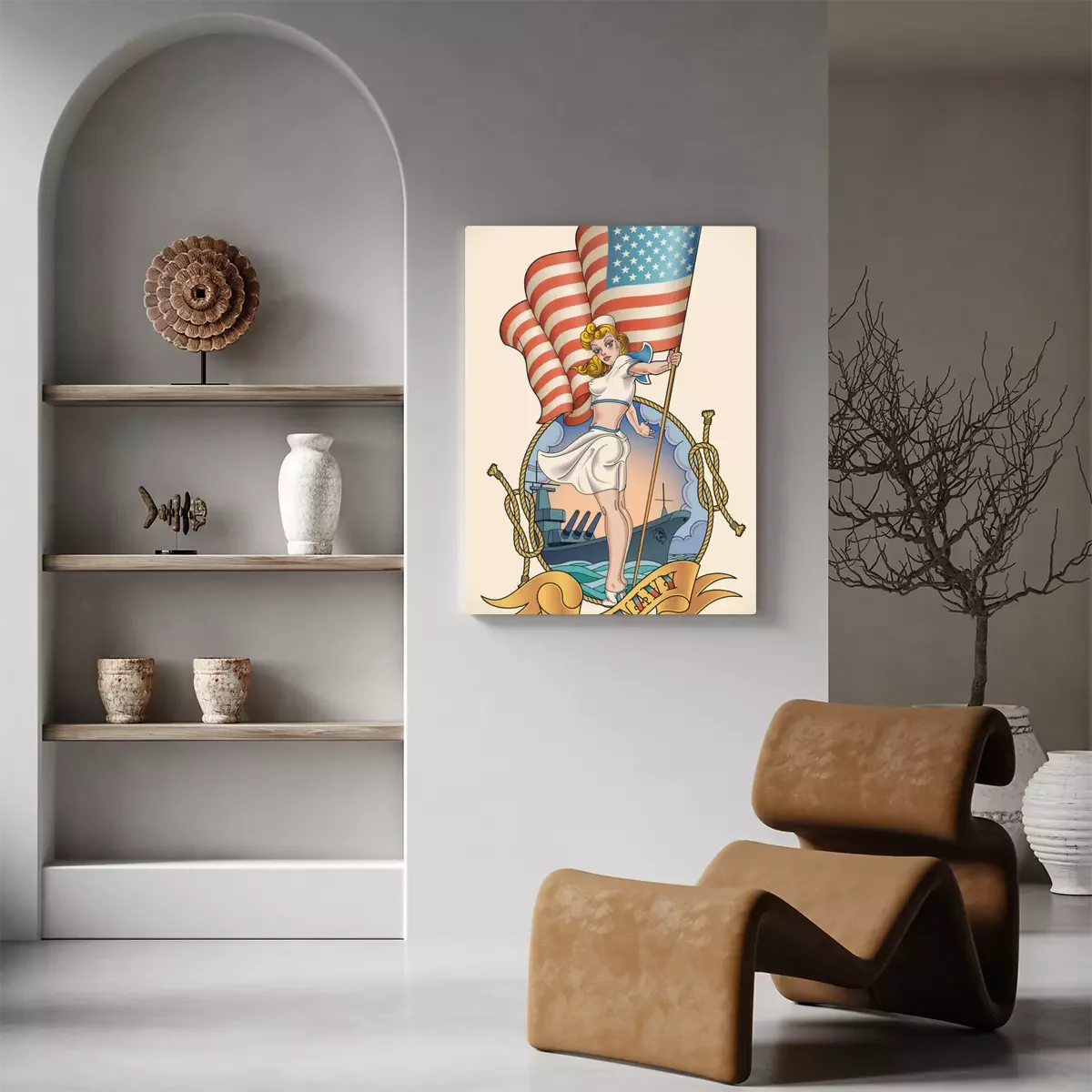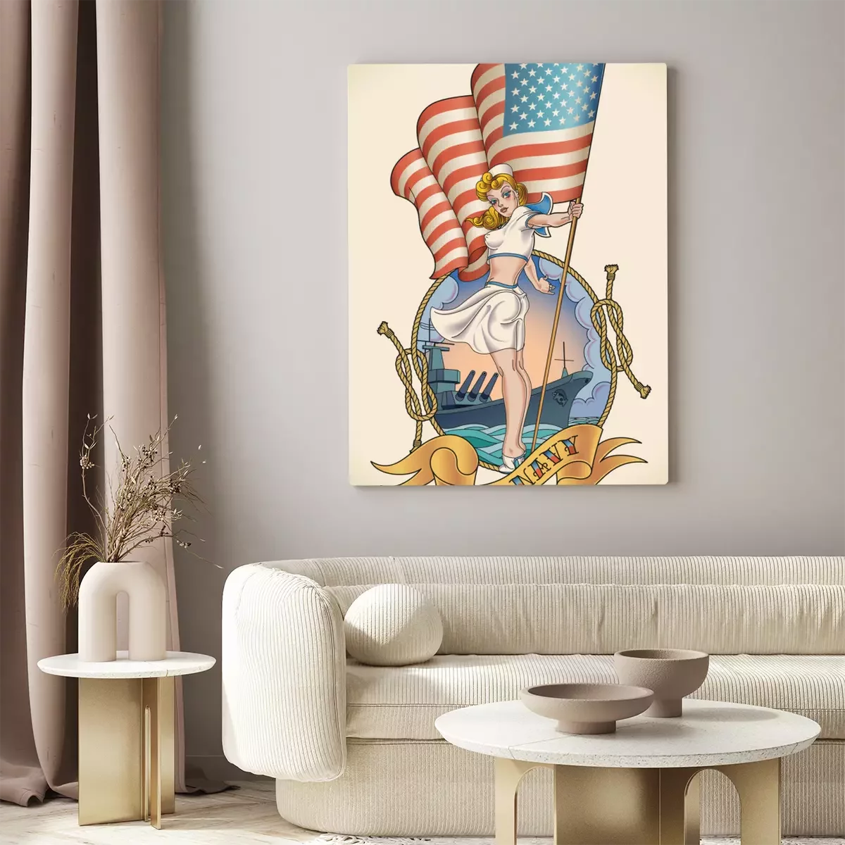 Bild: Gezeichnetes Mädchen vor dem Hintergrund des Marineschiffs
