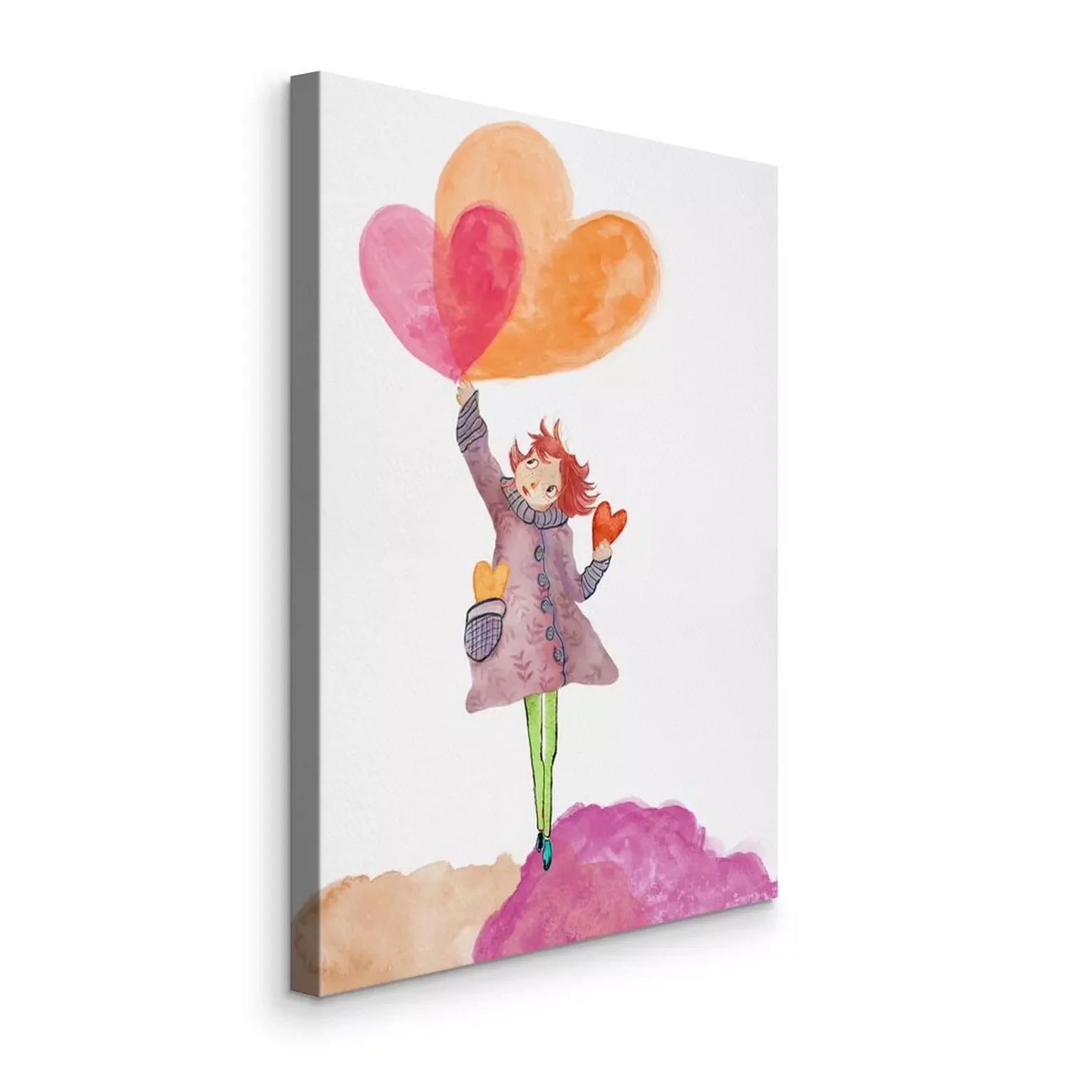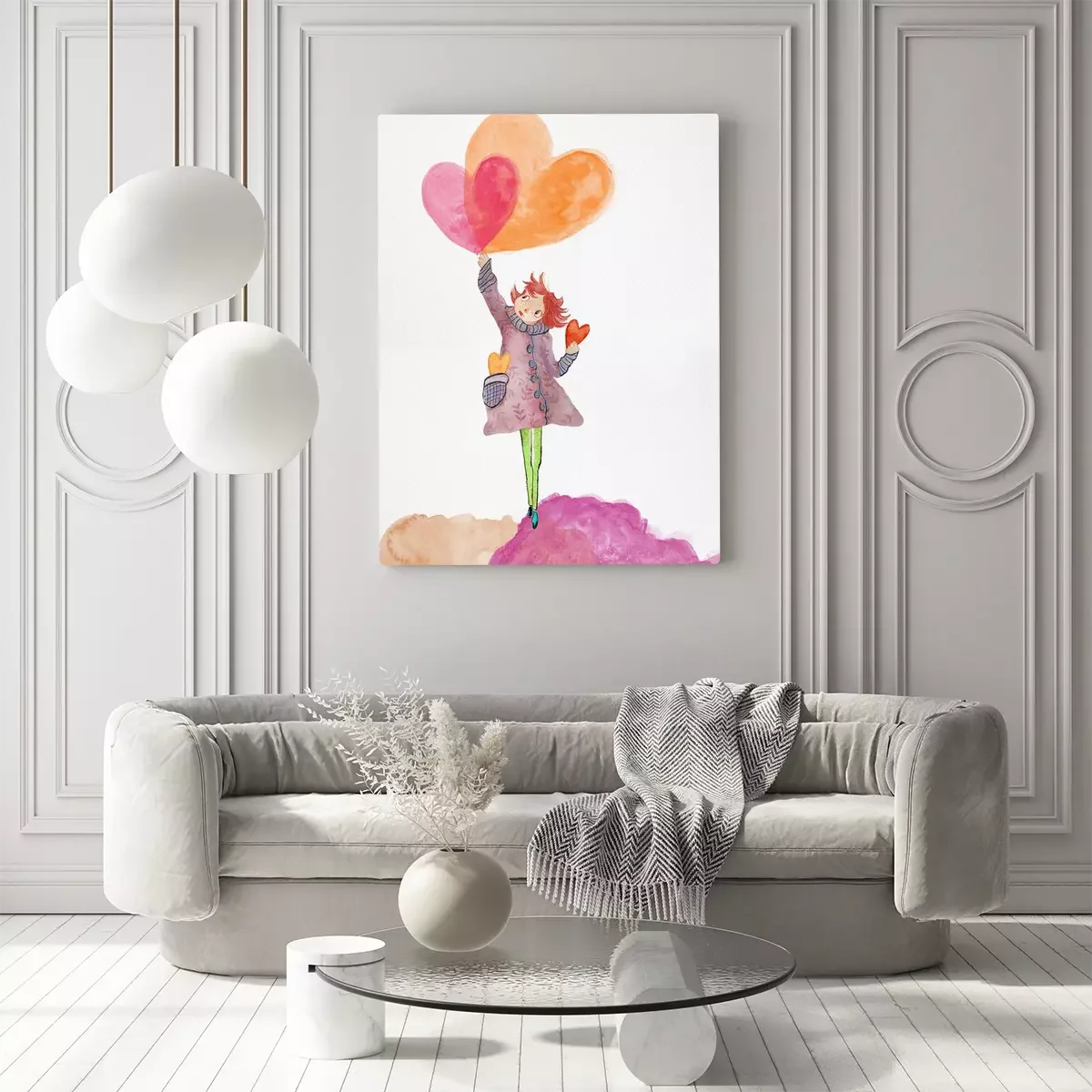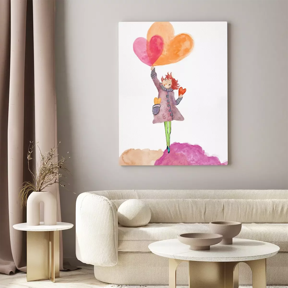 Bild: Girl and hearts. Watercolor igreeting card. Love concept.
