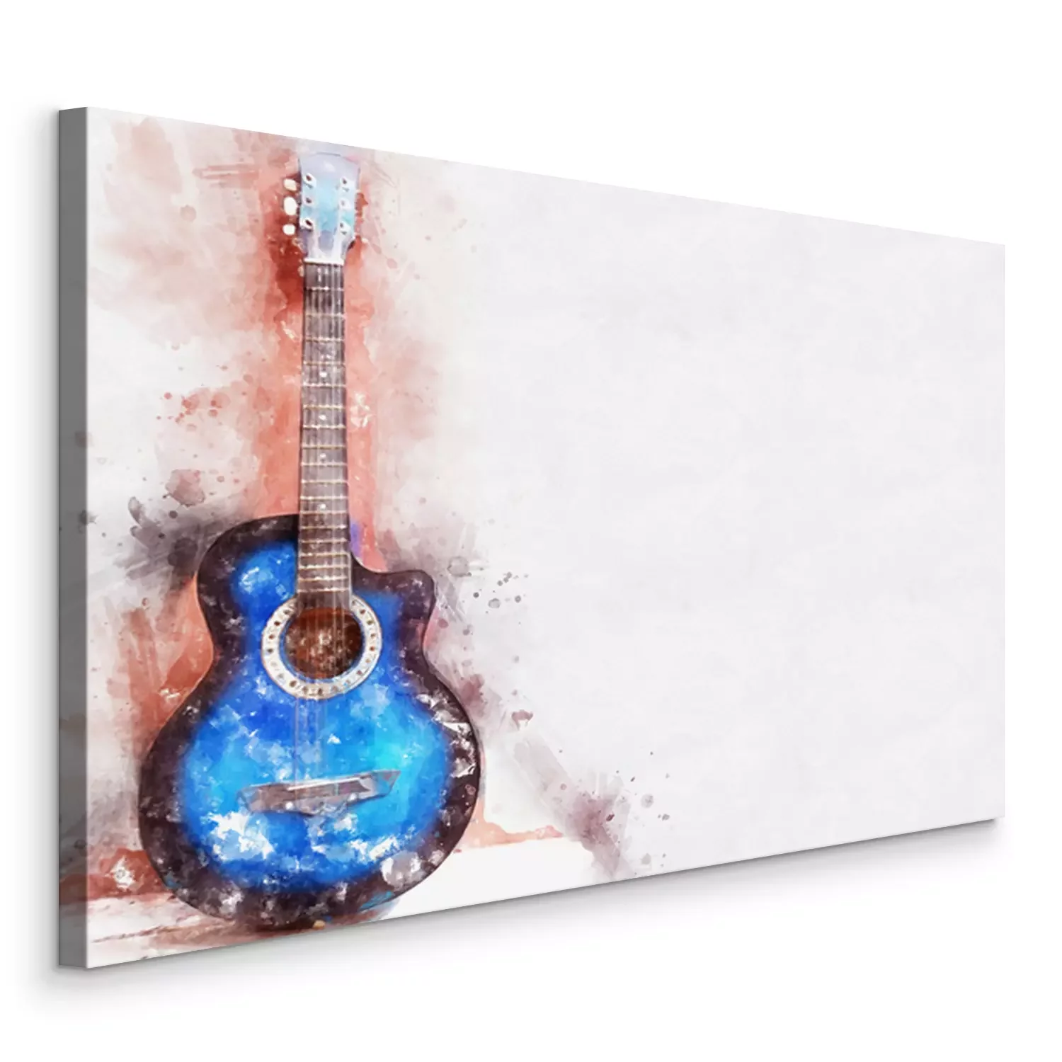 Blaue Gitarre, mit Wasserfarben bemaltes Instrument
