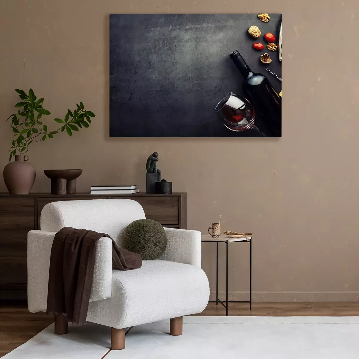 Bild Glas Wein Nüsse und Korkenzieher