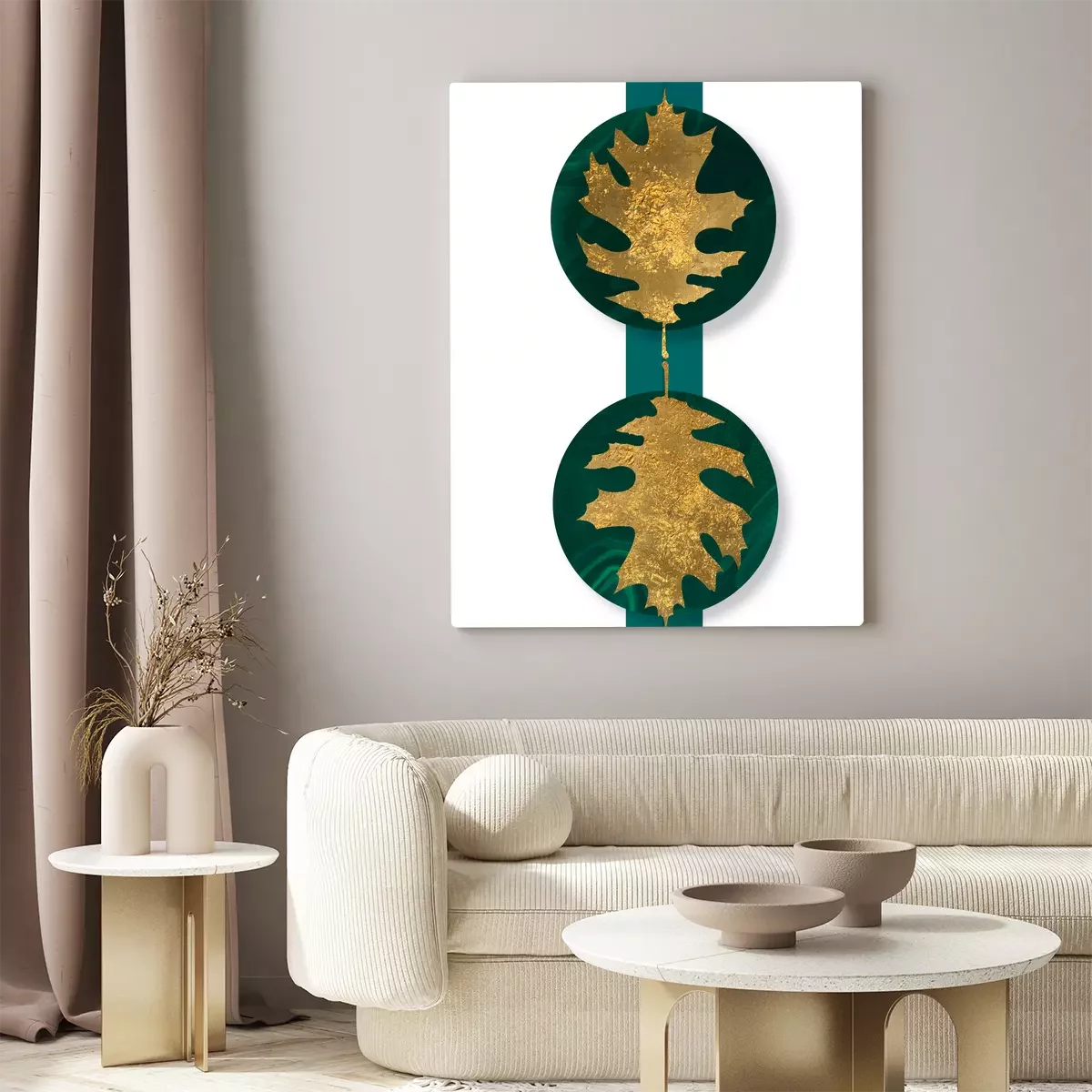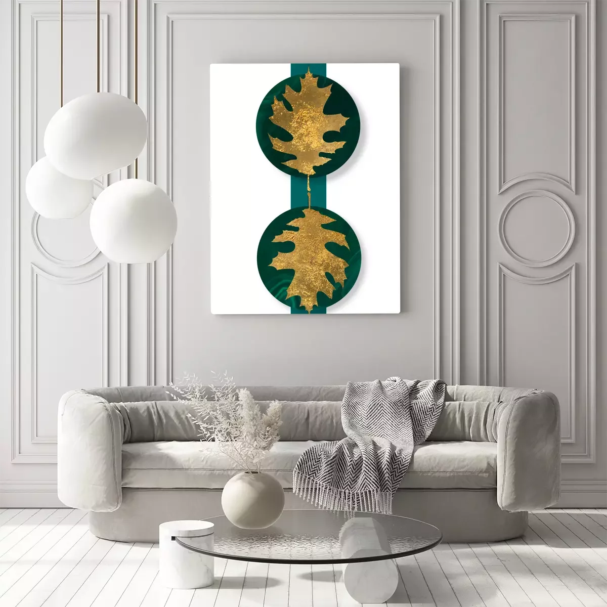 Goldene blätter auf runden grünen formen