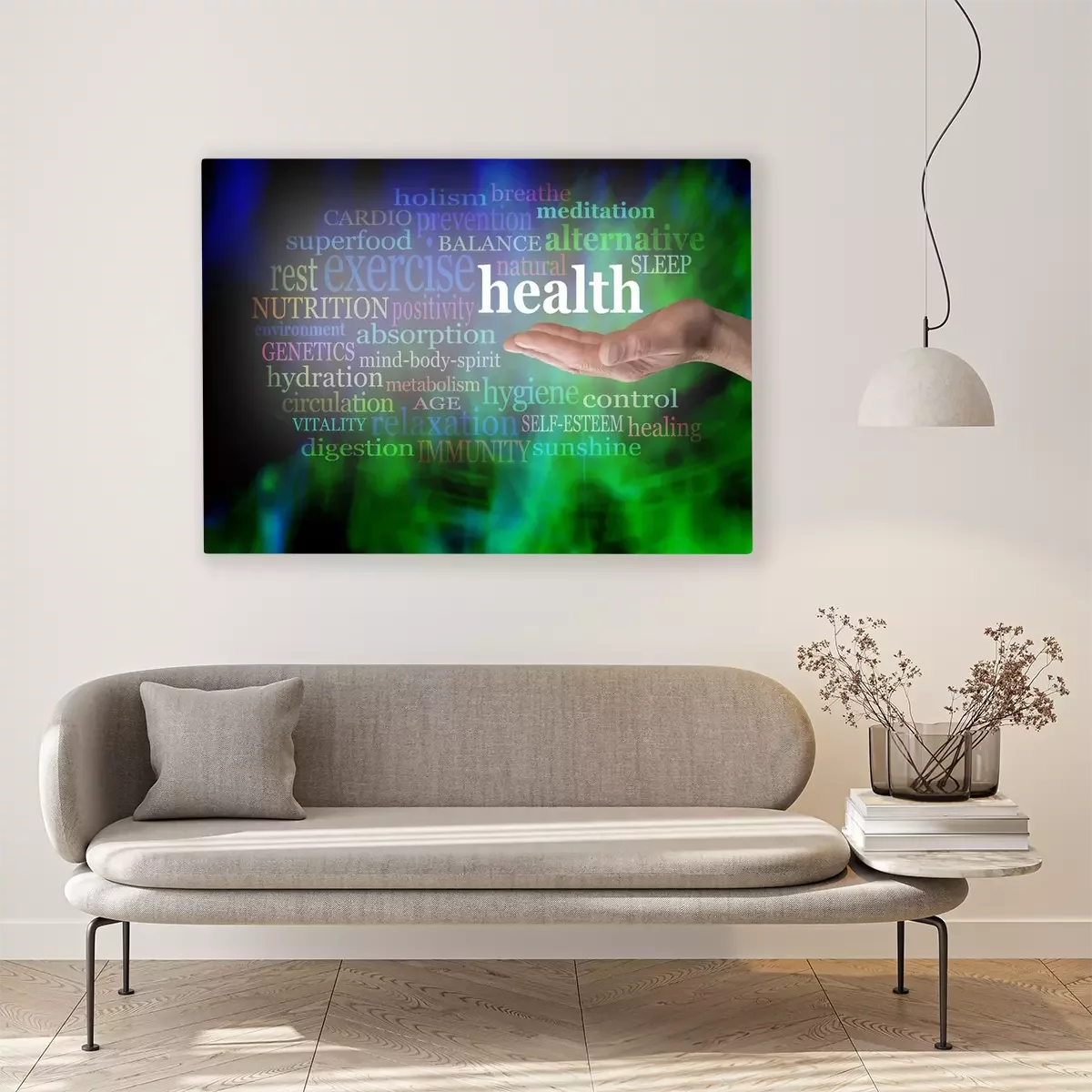 Bild: Grafik mit Aufschriften Gesundheit