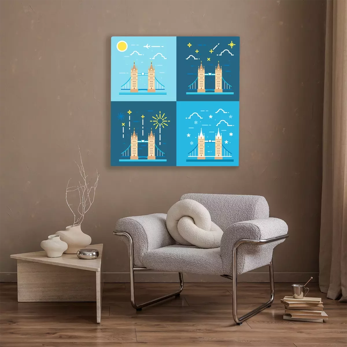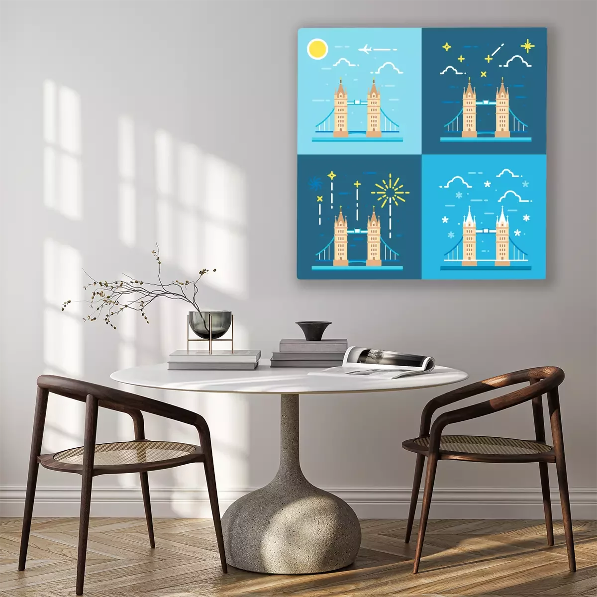 Das Motiv wird auf eine qualitativ hochwertige Leinwand gedruckt, die auf einen Blendrahmen gezogen wird. Da der Aufdruck die Seitenkanten bedeckt, muss das Bild nicht zusätzlich eingerahmt werden. Wir empfehlen außerdem Kompositionen aus mehreren Bildern, die ein harmonisches Ganzes bilden.