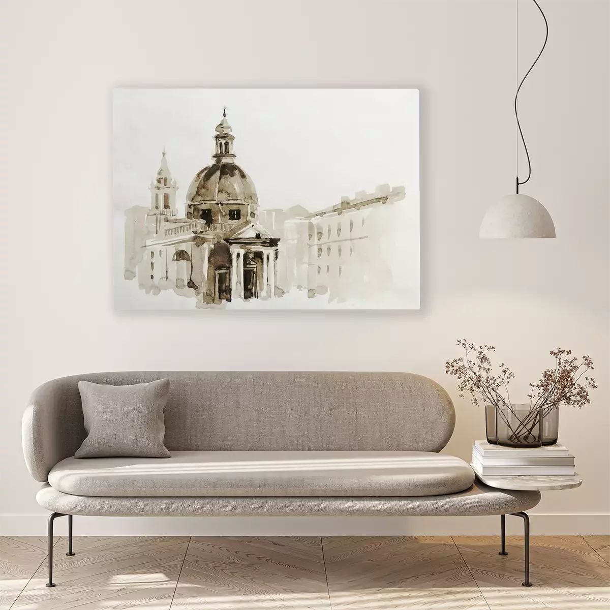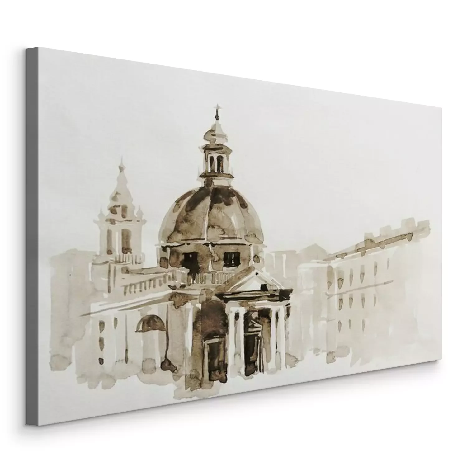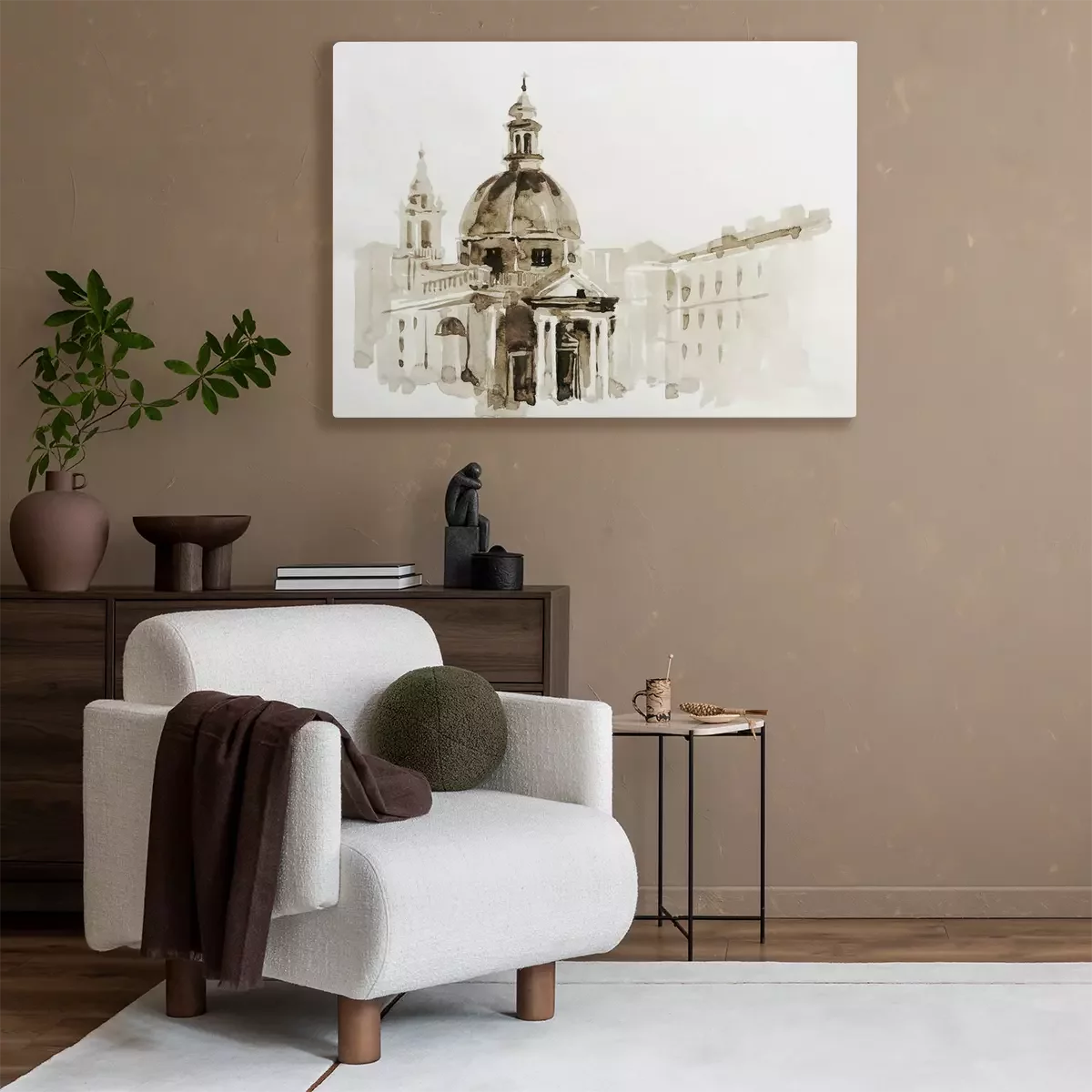 Bild: Grafische Darstellung von Rom. Italien. Poster-Design. Zweifarbiger Bleistift, Sepia. Duoton