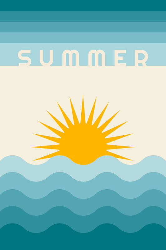 Bild: Grafischer Sonnenaufgang im Retro-Stil über dem Meer