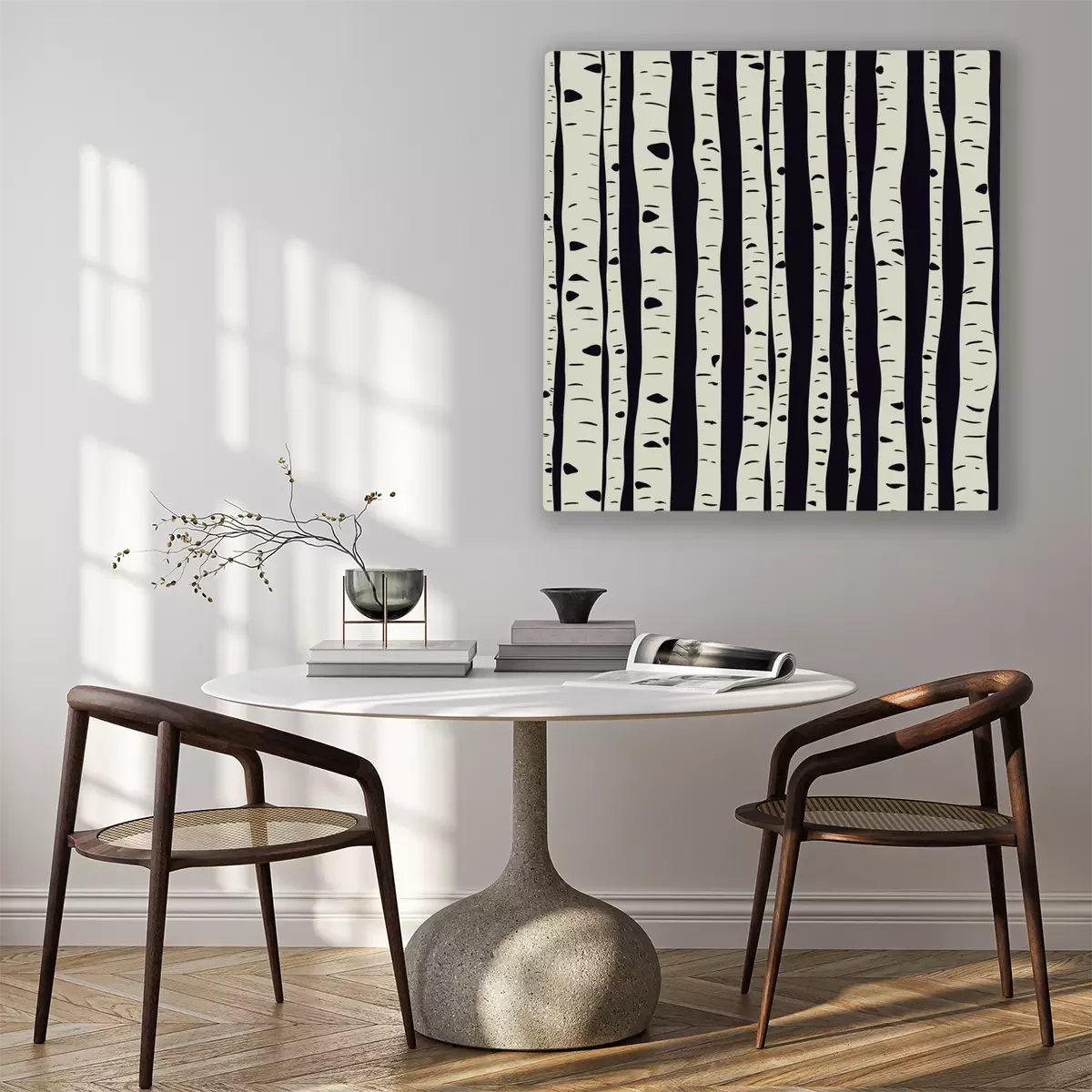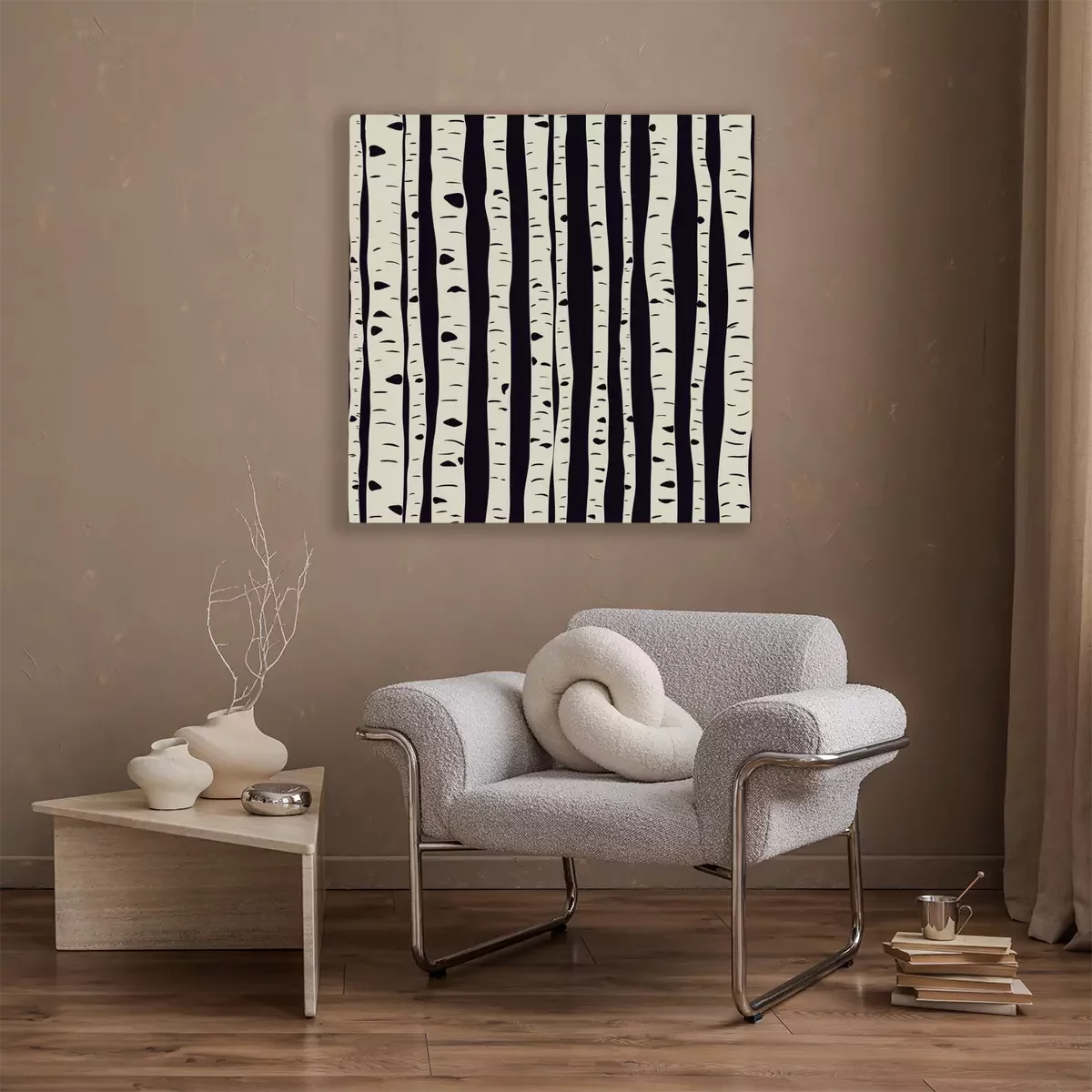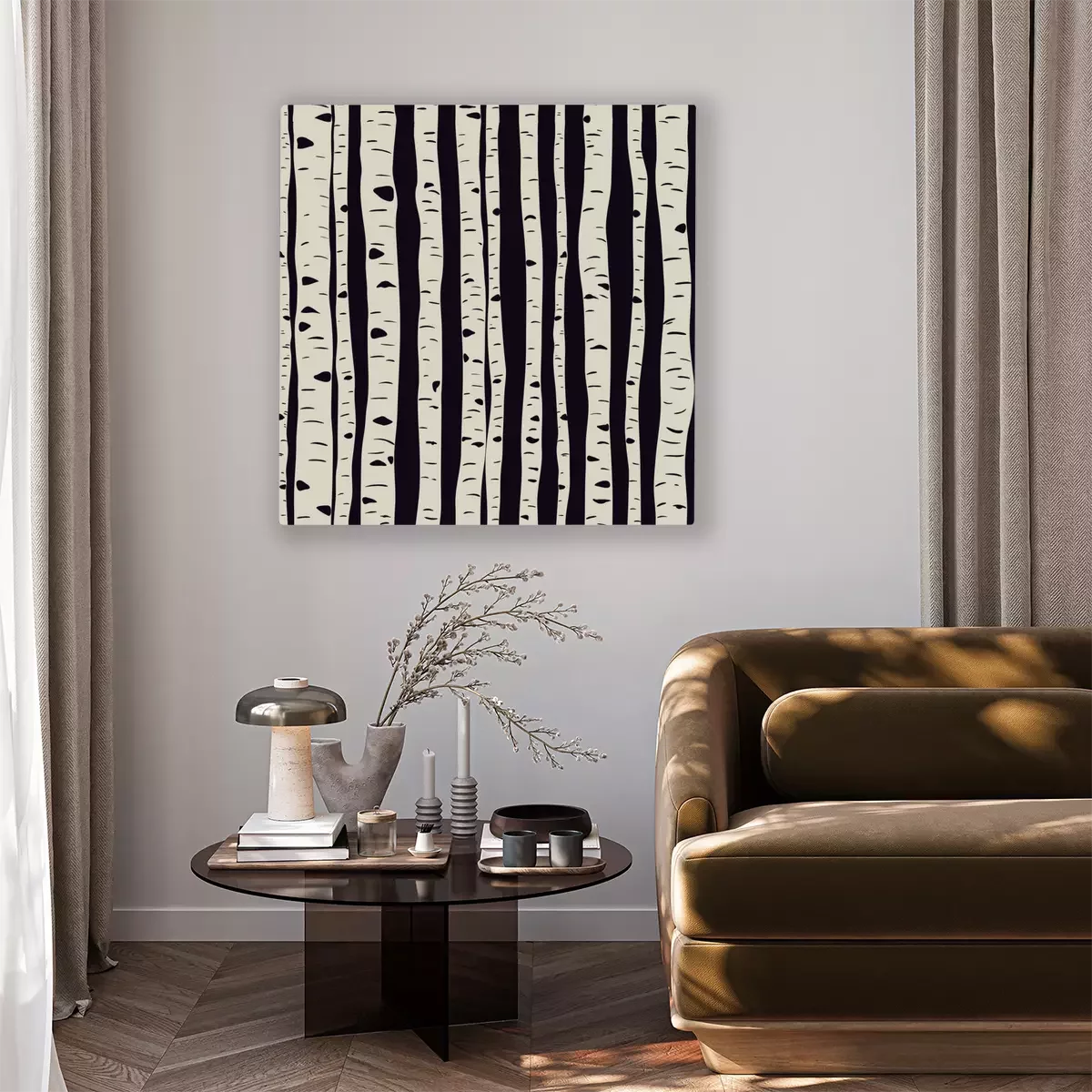 Illustration mit Birkenstämmen auf weißem Hintergrund