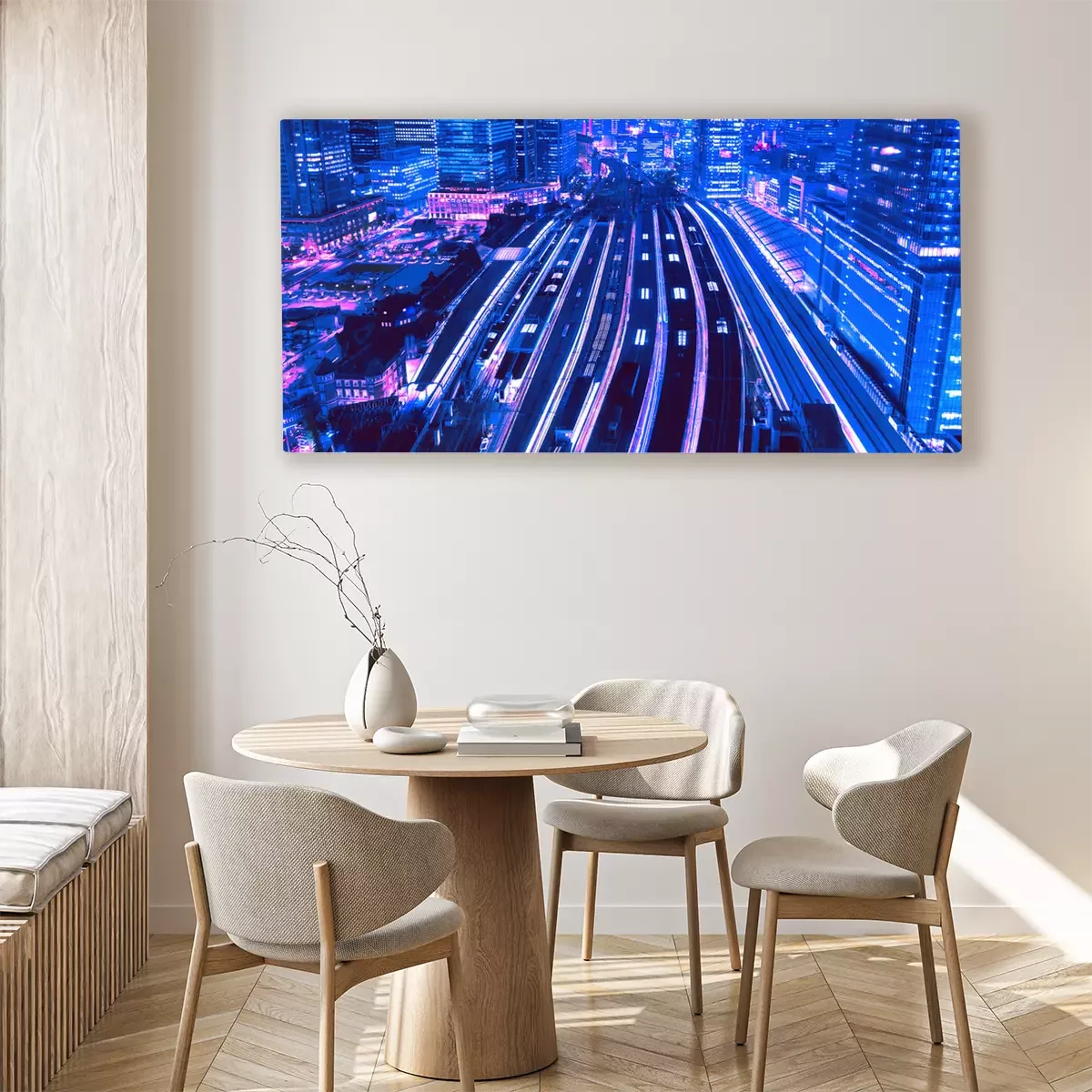 Nahaufnahme von Gebäuden in Tokio bei Nacht