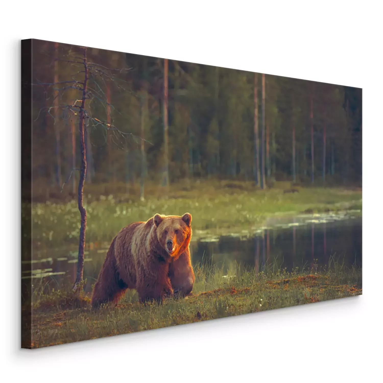 Bild Großer männlicher Bär zu Fuß im Moor bei Sonnenuntergang