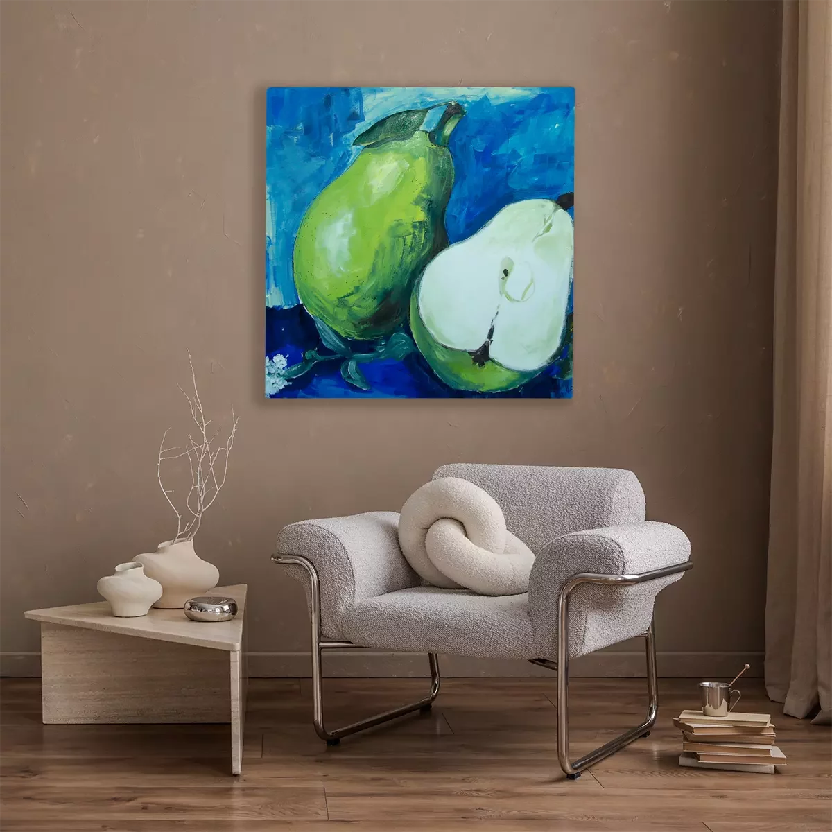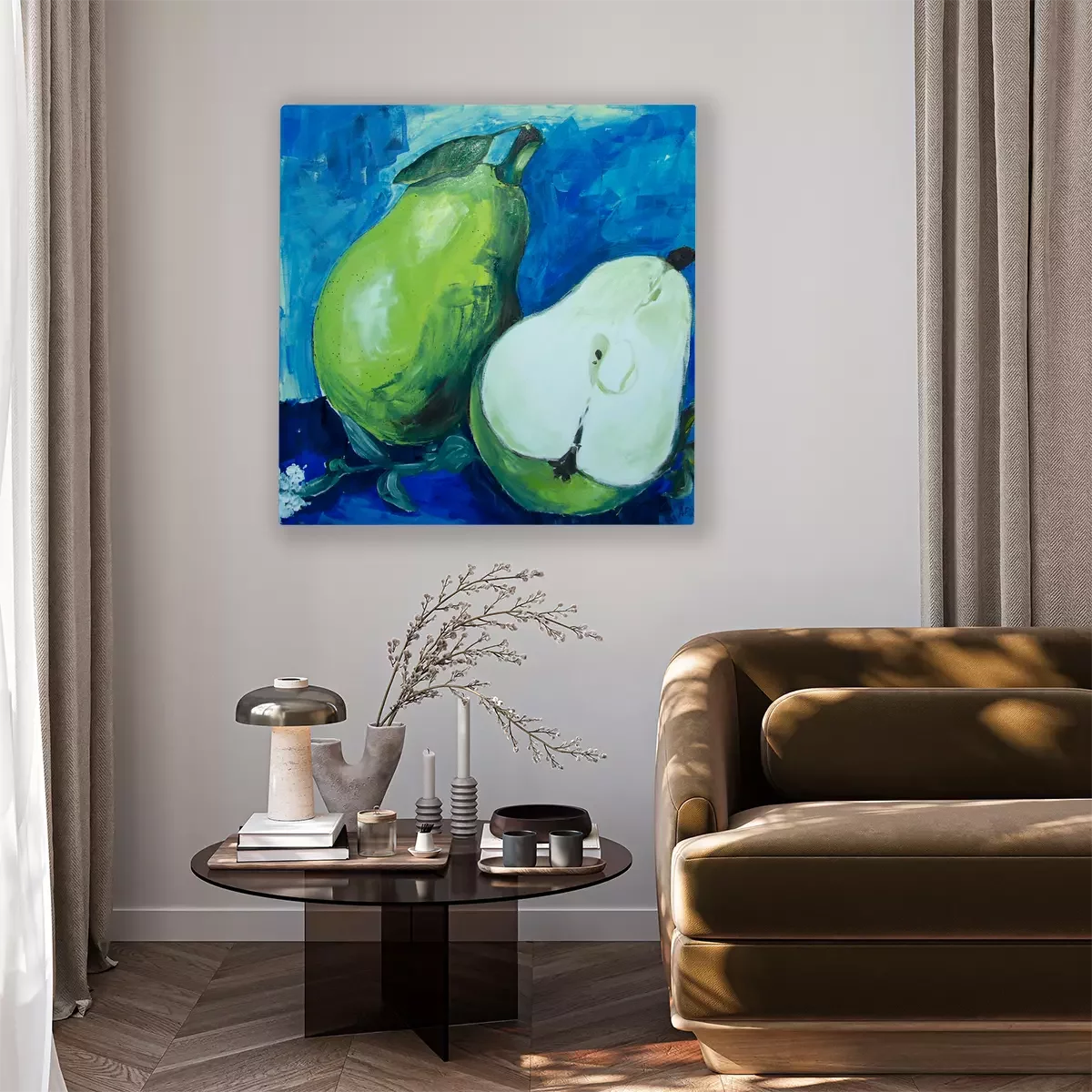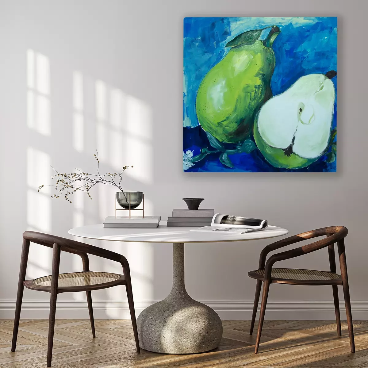 Grüne birnen auf blauem hintergrund