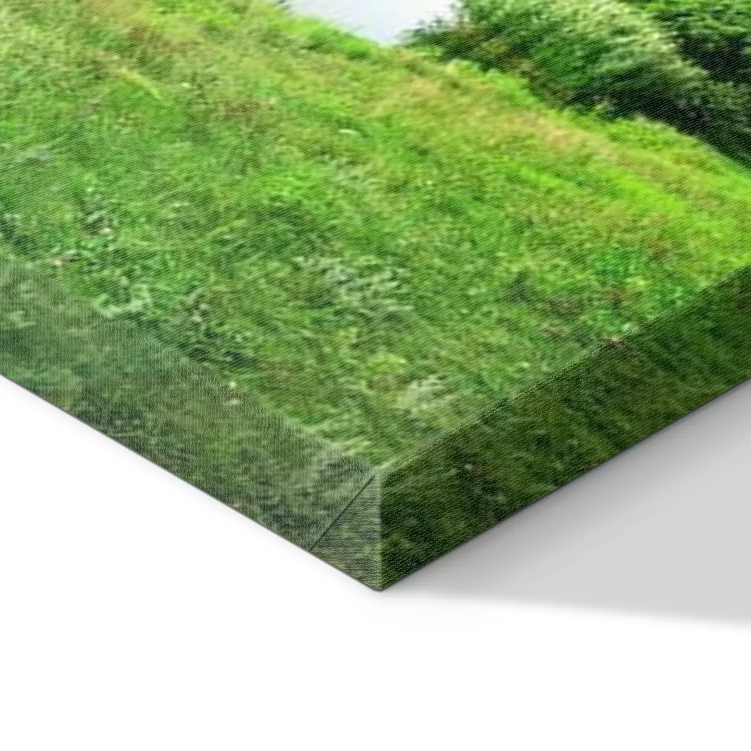 Das Motiv wird auf eine qualitativ hochwertige Leinwand gedruckt, die auf einen Blendrahmen gezogen wird. Da der Aufdruck die Seitenkanten bedeckt, muss das Bild nicht zusätzlich eingerahmt werden. Wir empfehlen außerdem Kompositionen aus mehreren Bildern, die ein harmonisches Ganzes bilden.