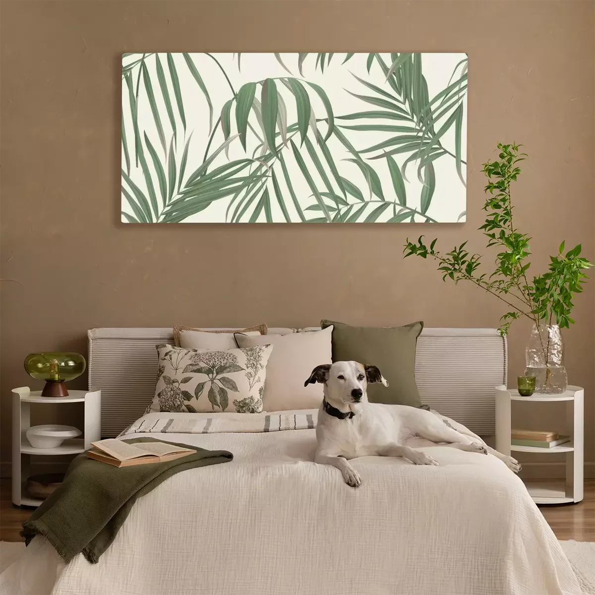 Bild Grüne Palmenblätter auf hellbraunem Hintergrund