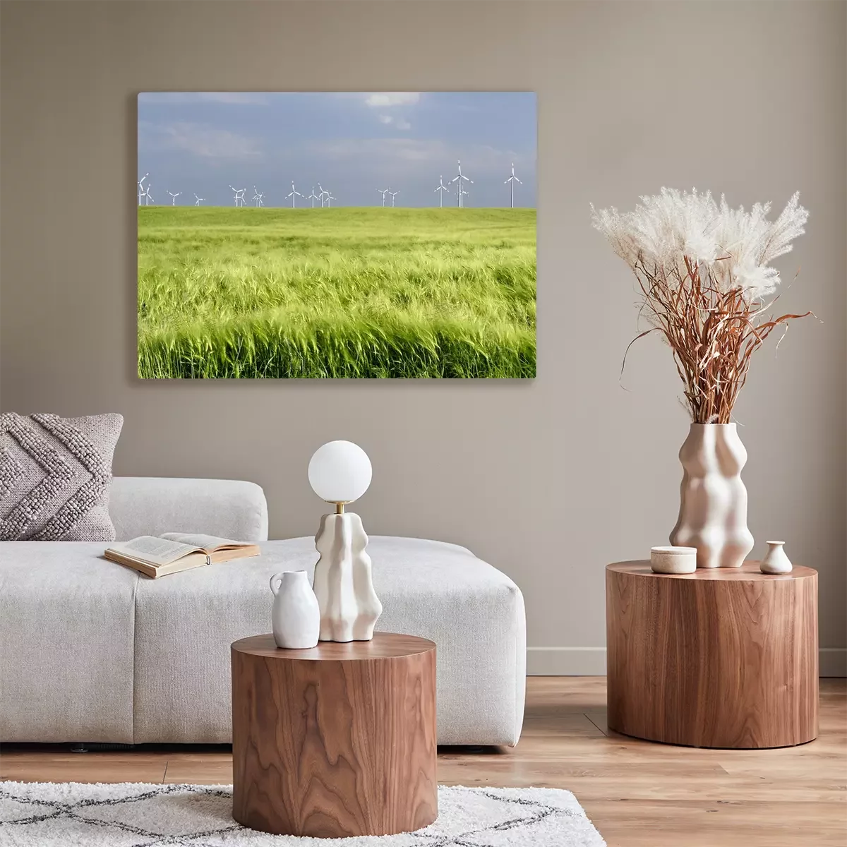 Bild Grüne Wiese und Windräder