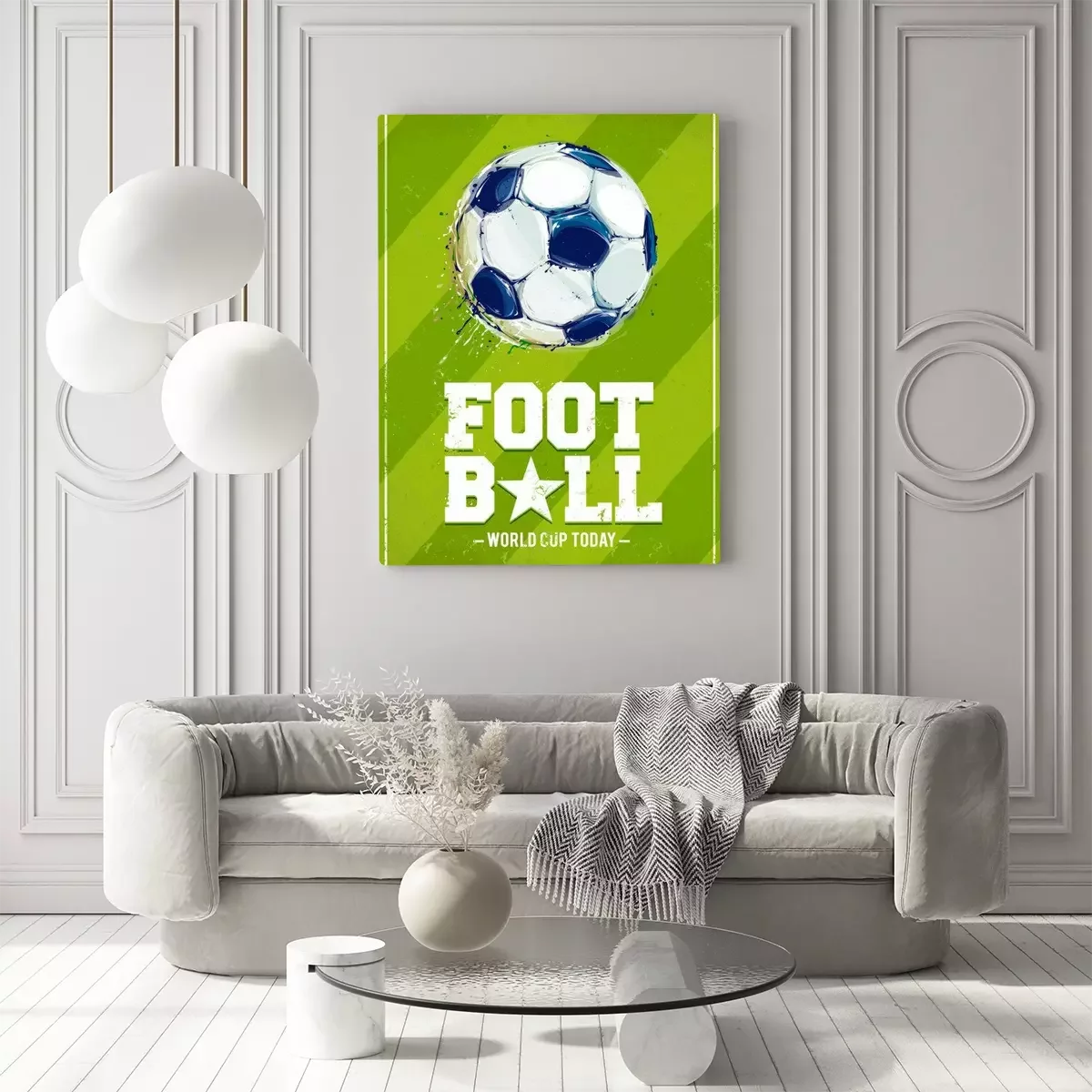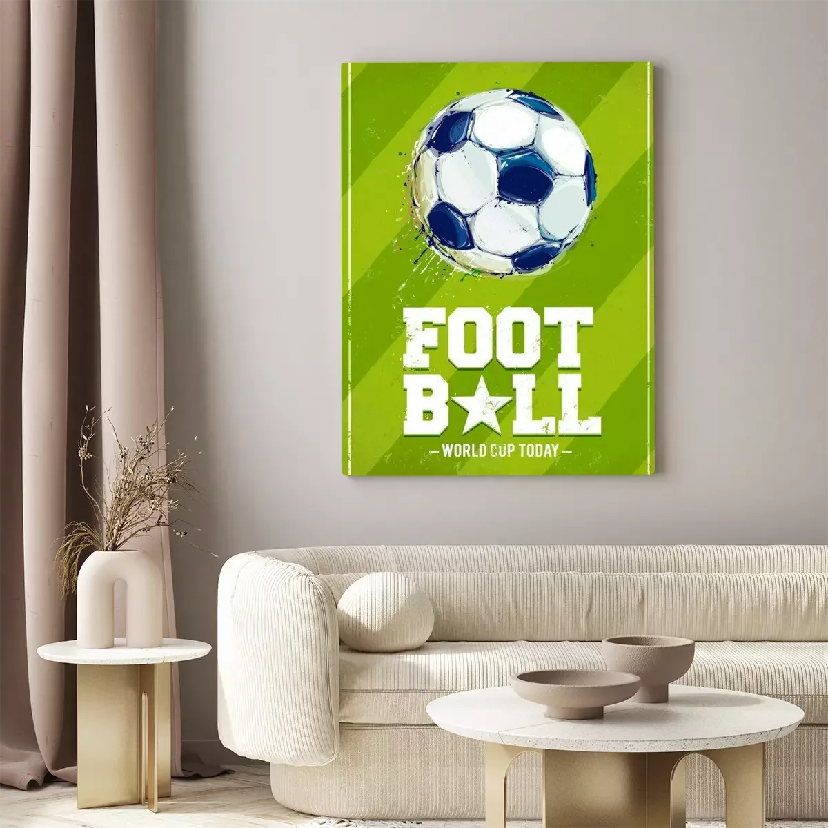 Fußball mit Feld im Hintergrund im Grunge-Poster-Stil