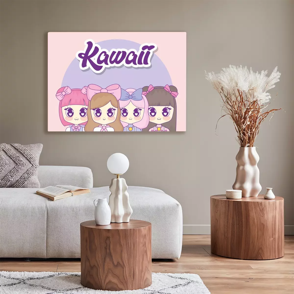 Bild: Gruppe des netten kawaii Mädchencharaktervektor-Illustrationsdesigns