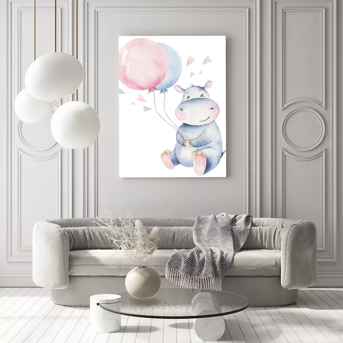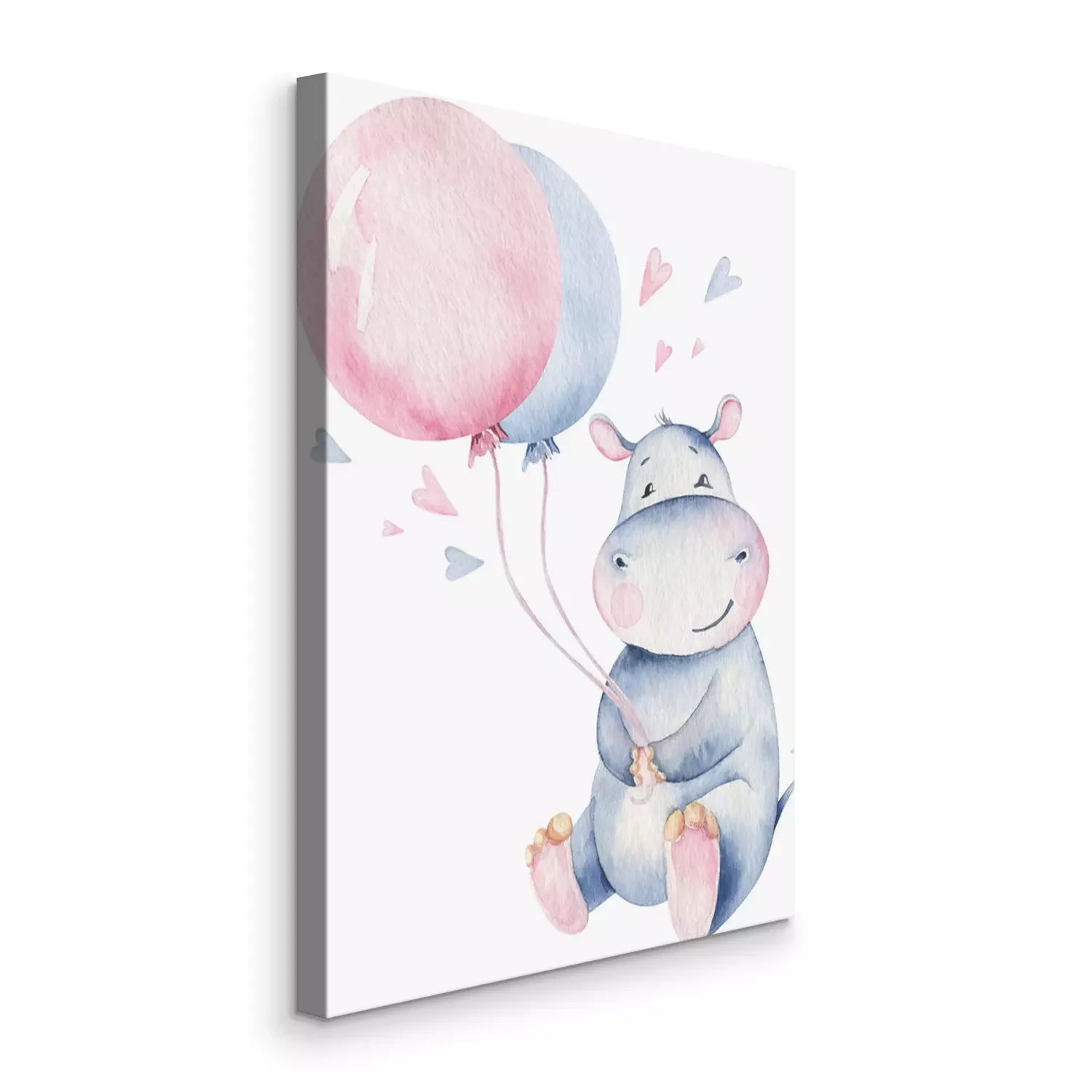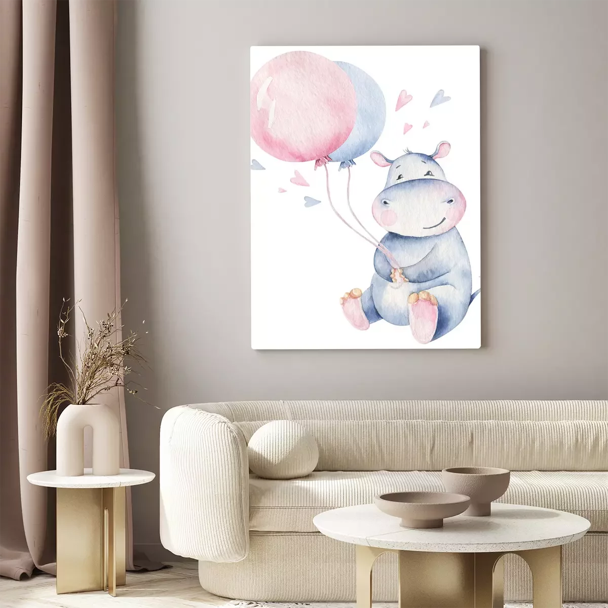 Bild: Hand drawn cute isolated tropical summer watercolor hippo animals. hippopotamus baby and mother cartoon animal illustrations, jungle tree, brazil trendy design. Aloha collection.