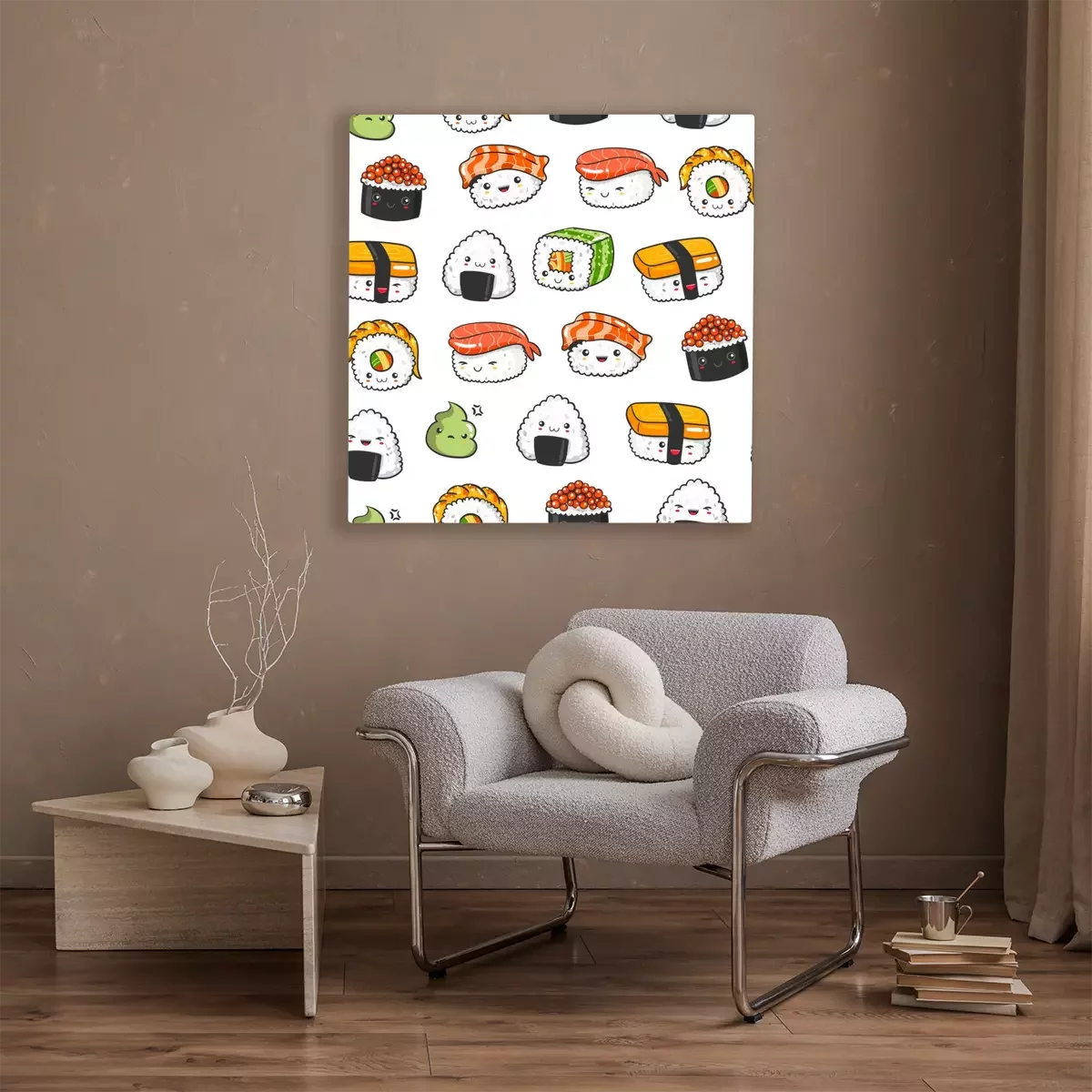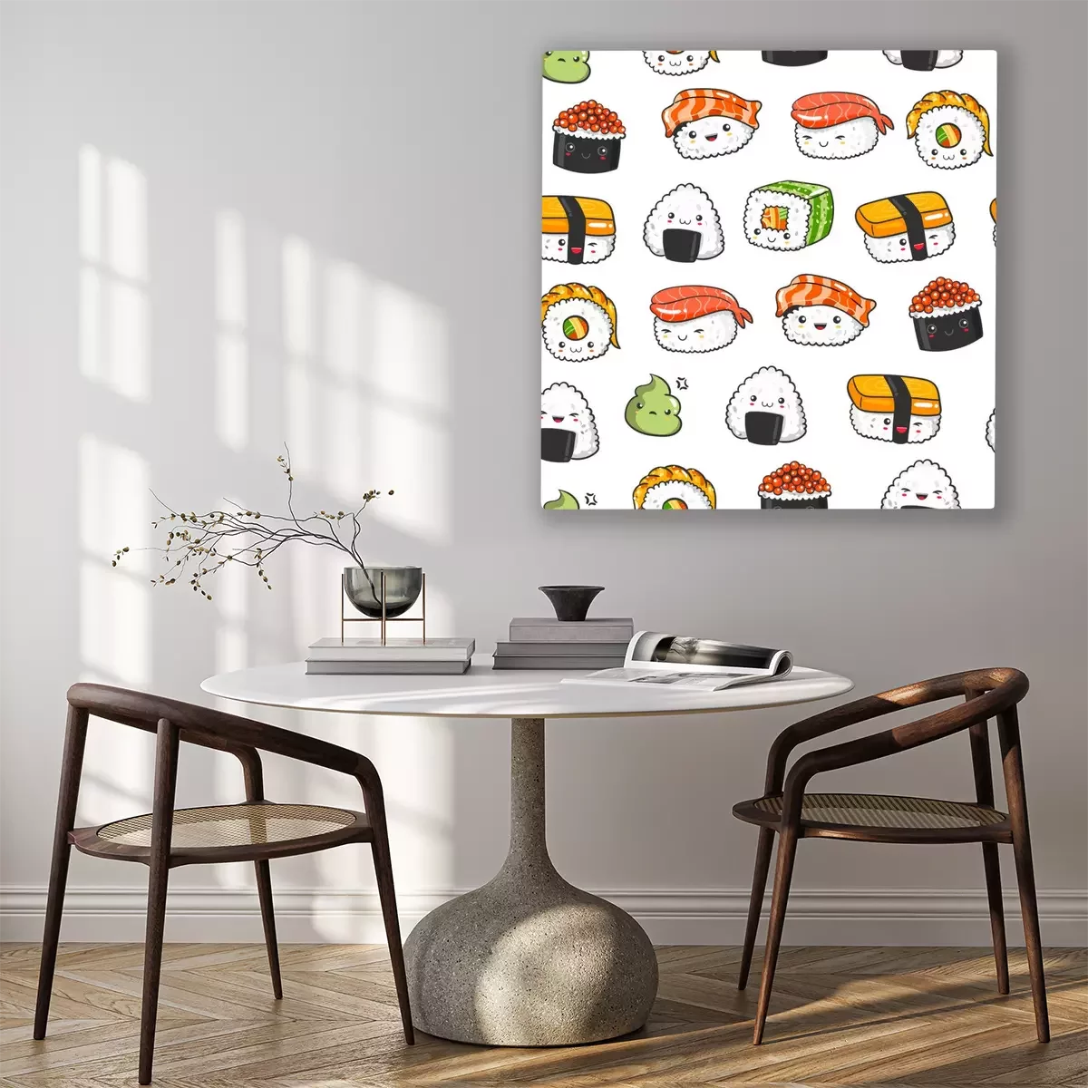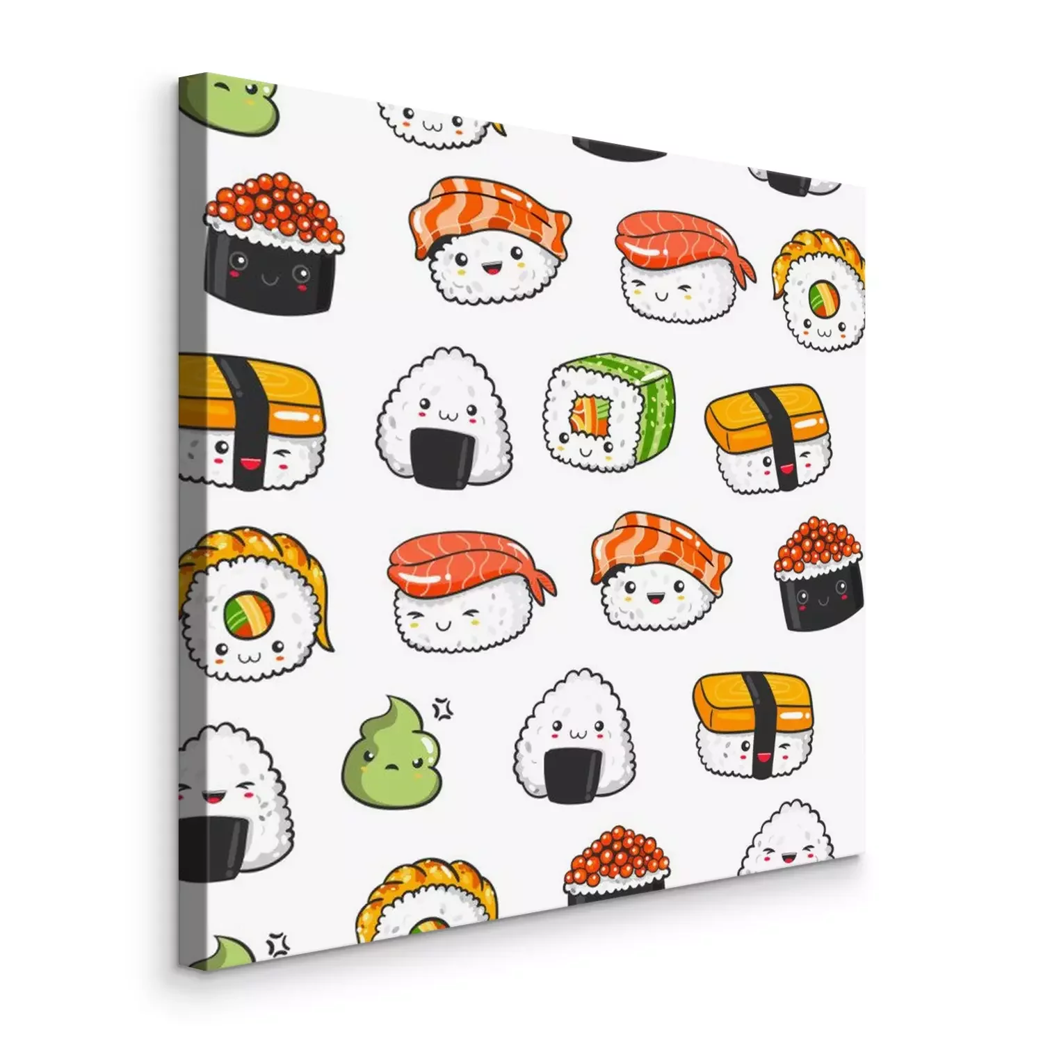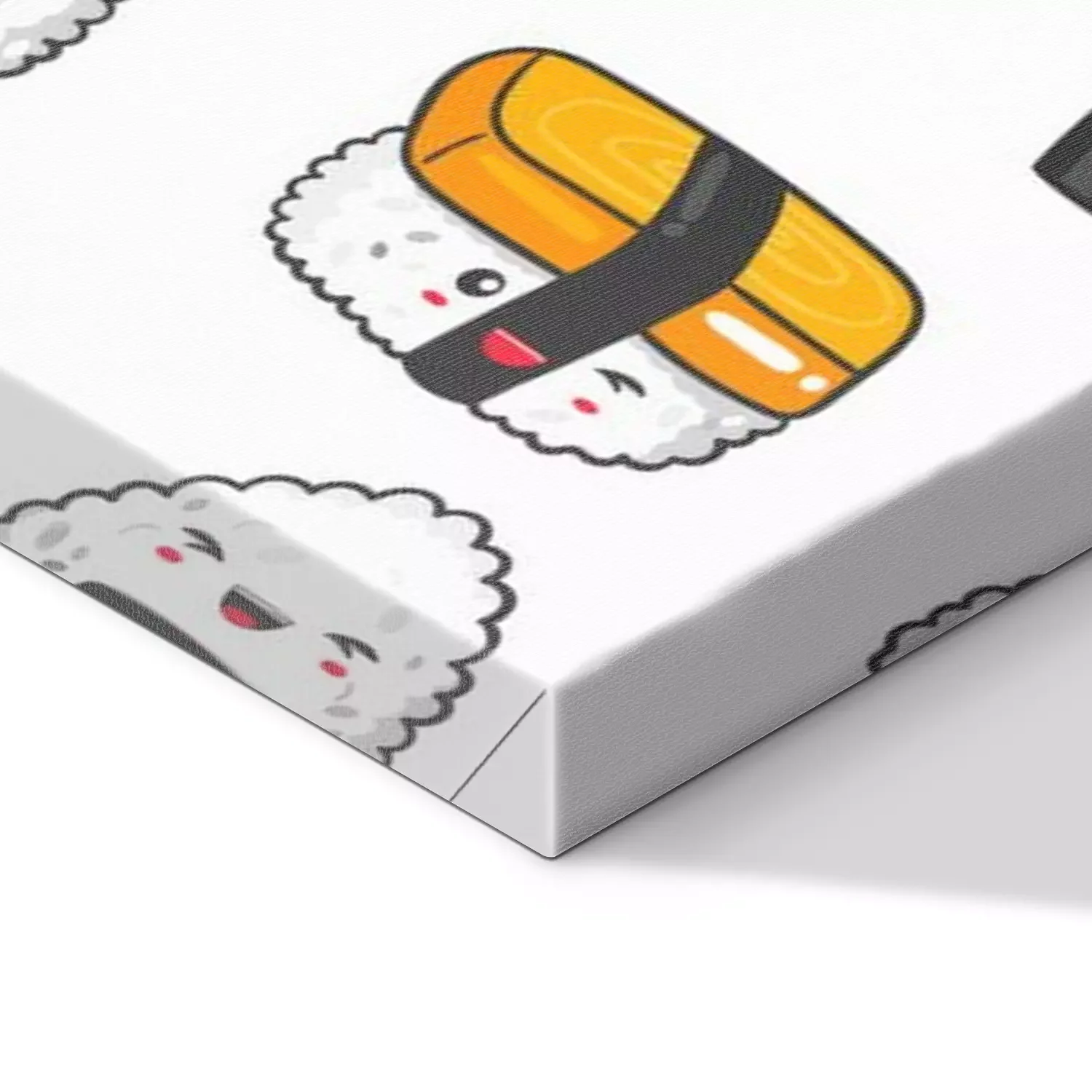 Bild Hand drawn various kawaii sushi. Colored vector seamless pattern