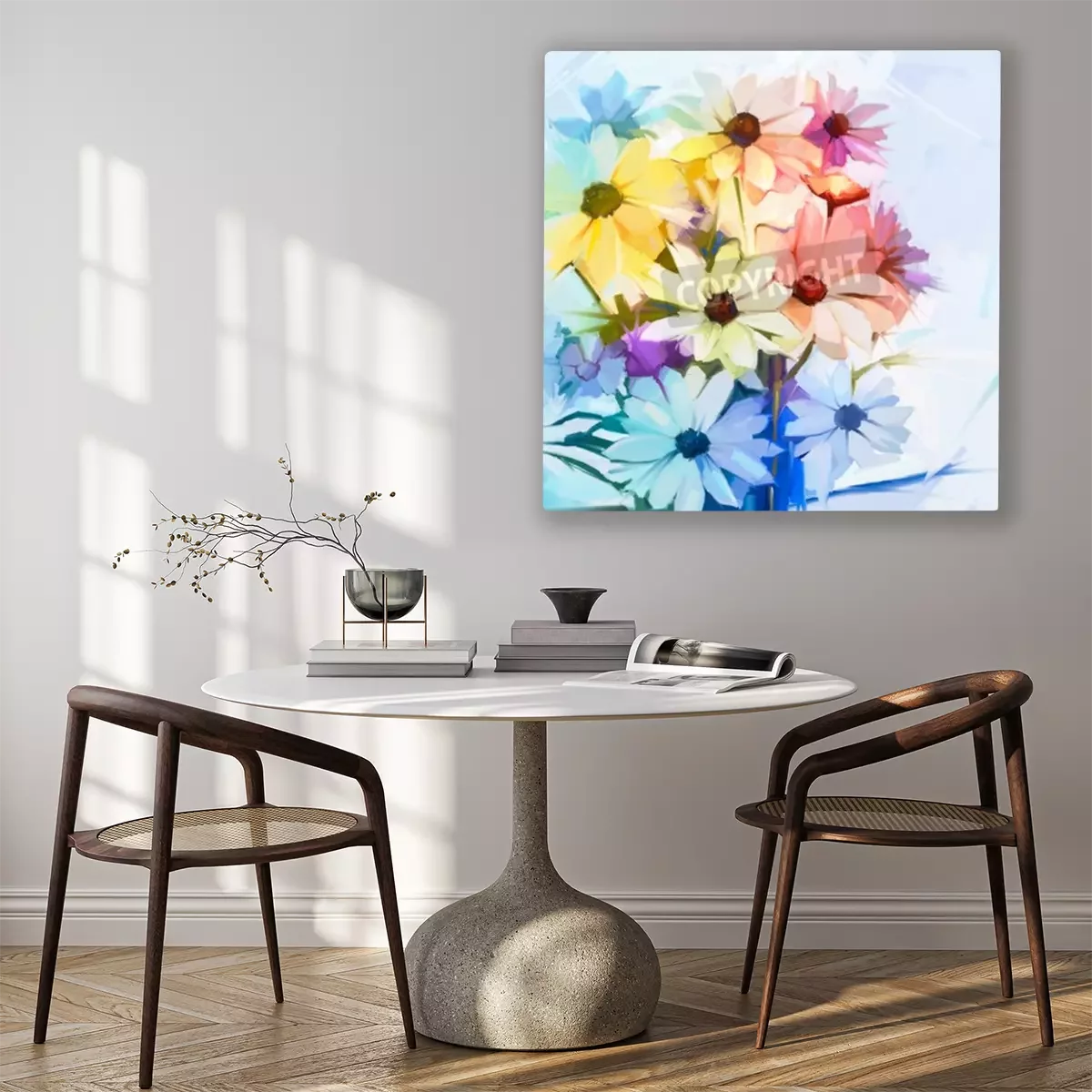 Das Motiv wird auf eine qualitativ hochwertige Leinwand gedruckt, die auf einen Blendrahmen gezogen wird. Da der Aufdruck die Seitenkanten bedeckt, muss das Bild nicht zusätzlich eingerahmt werden. Wir empfehlen außerdem Kompositionen aus mehreren Bildern, die ein harmonisches Ganzes bilden.