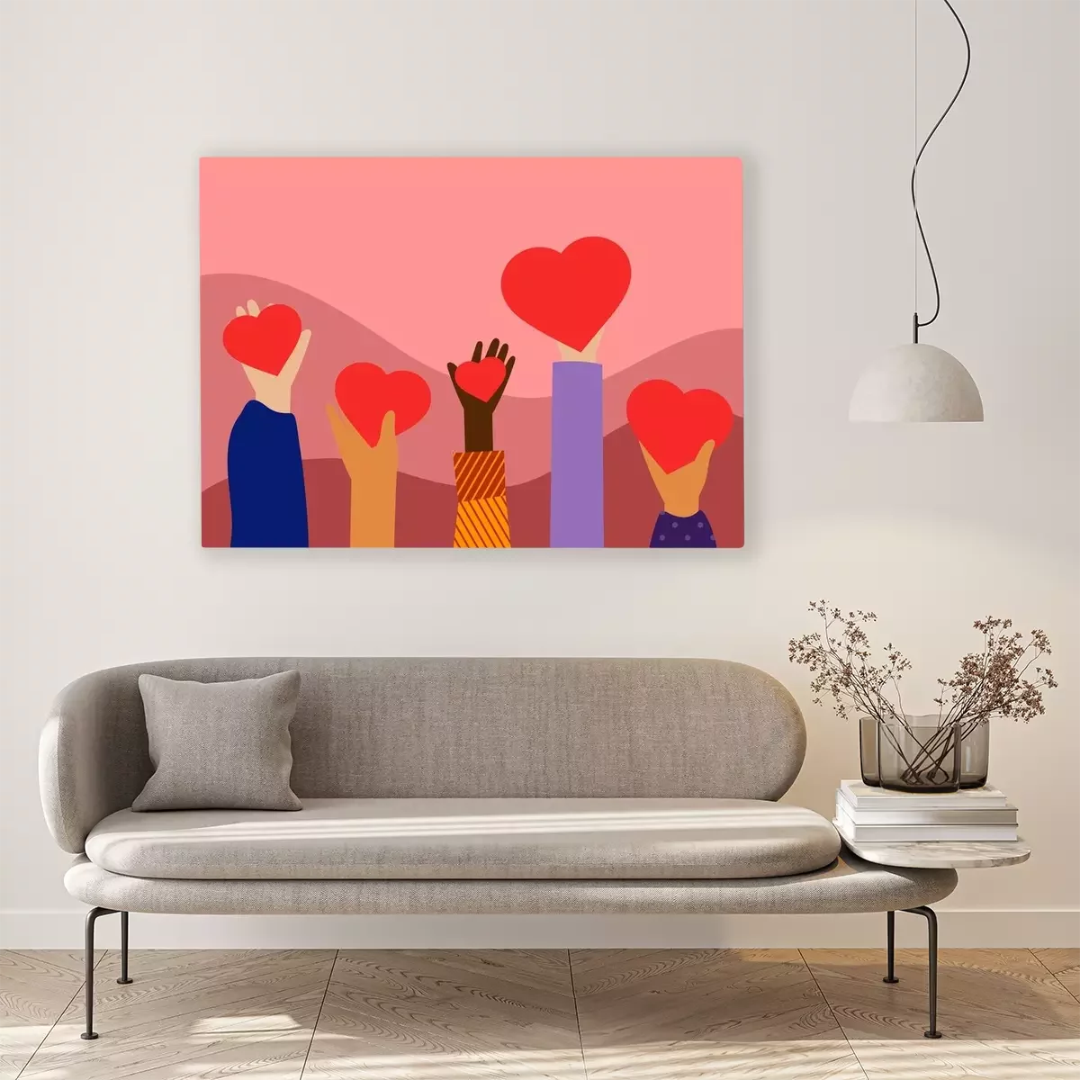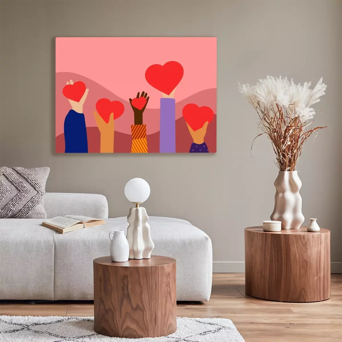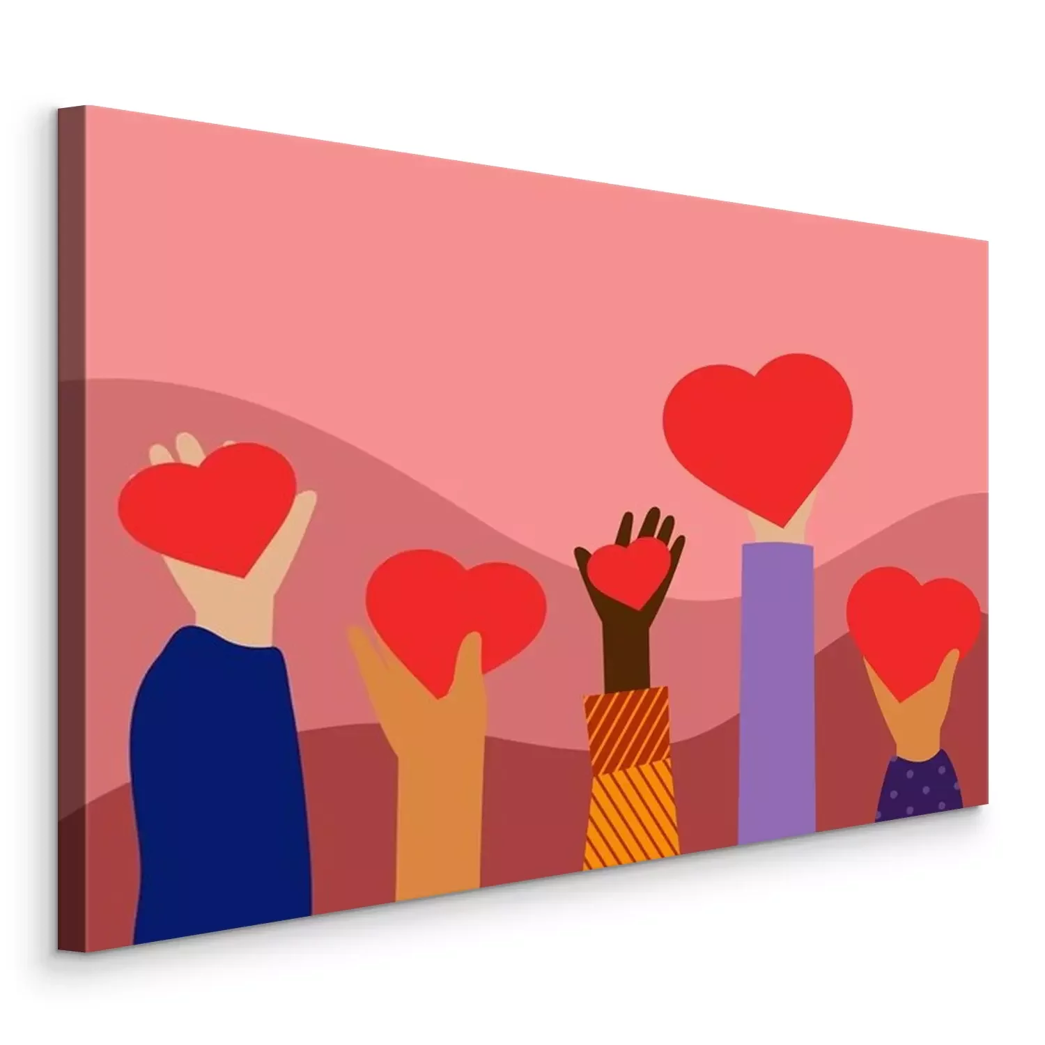 Bild Hands hold hearts. Charity concept. Flat trendy design. Simple illustration.