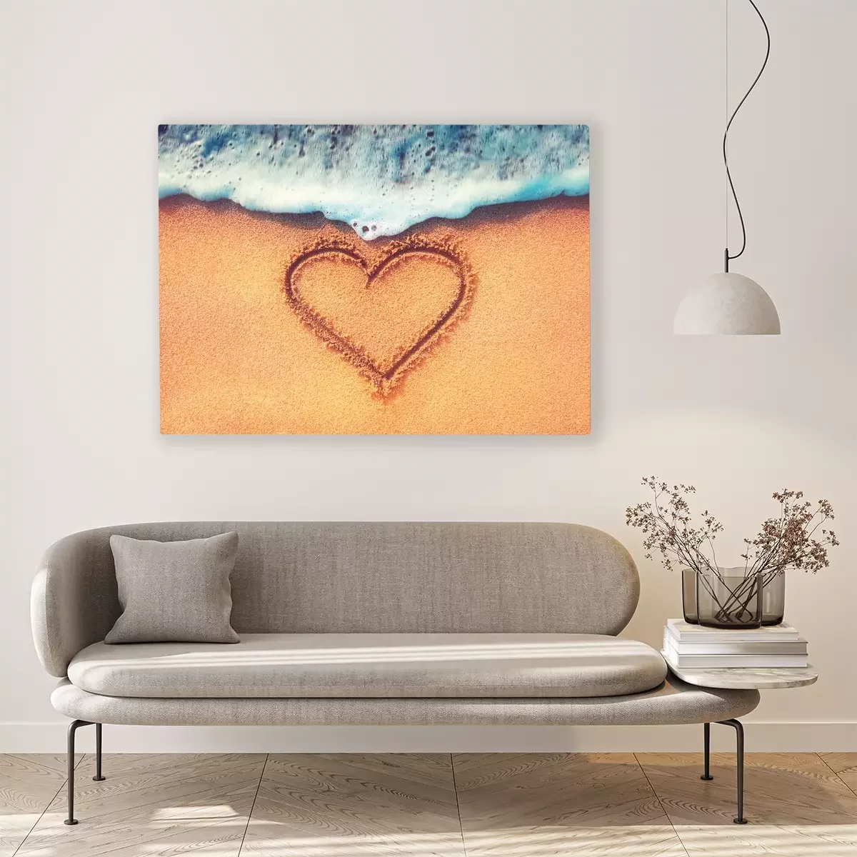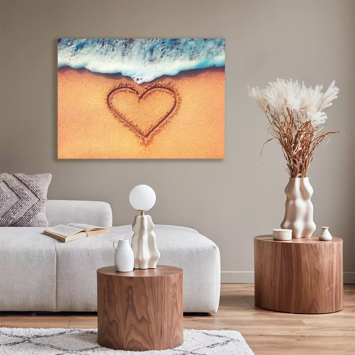 Bild Herz auf einem Sand des Strandes mit Welle auf Hintergrund