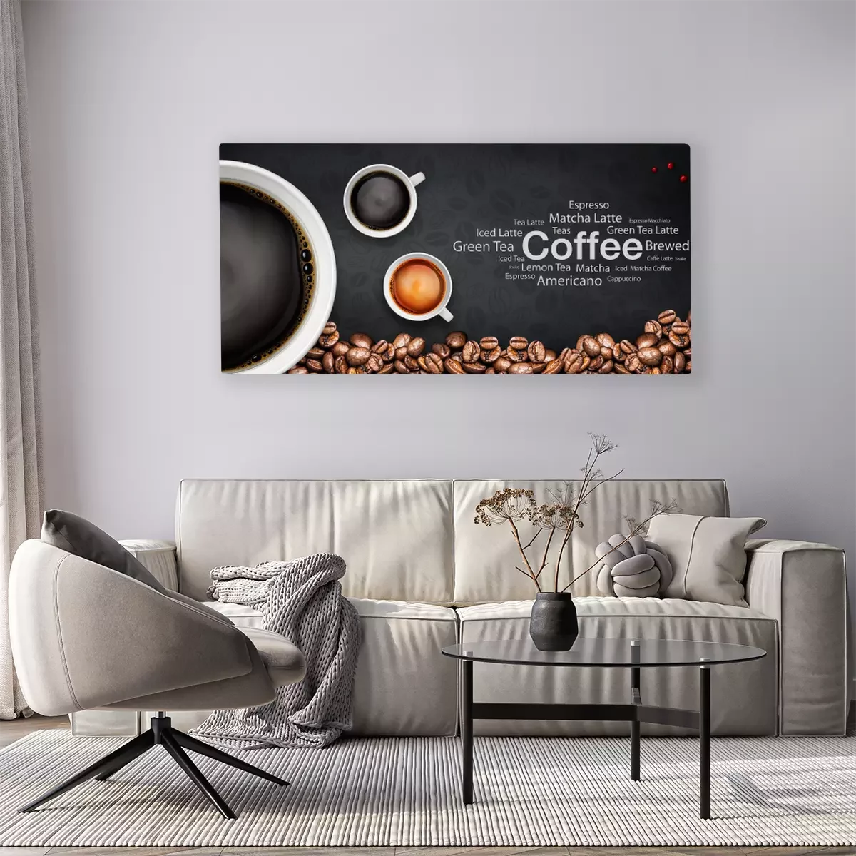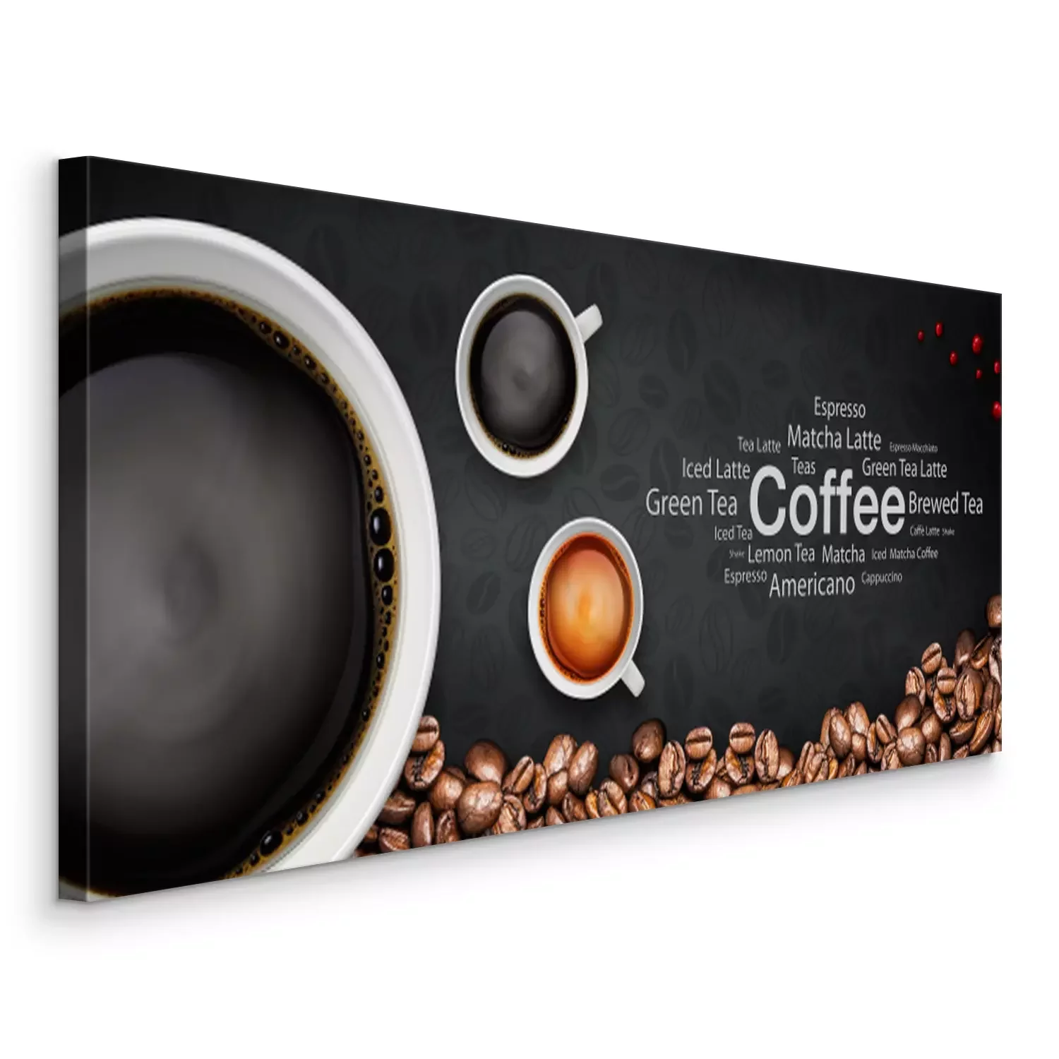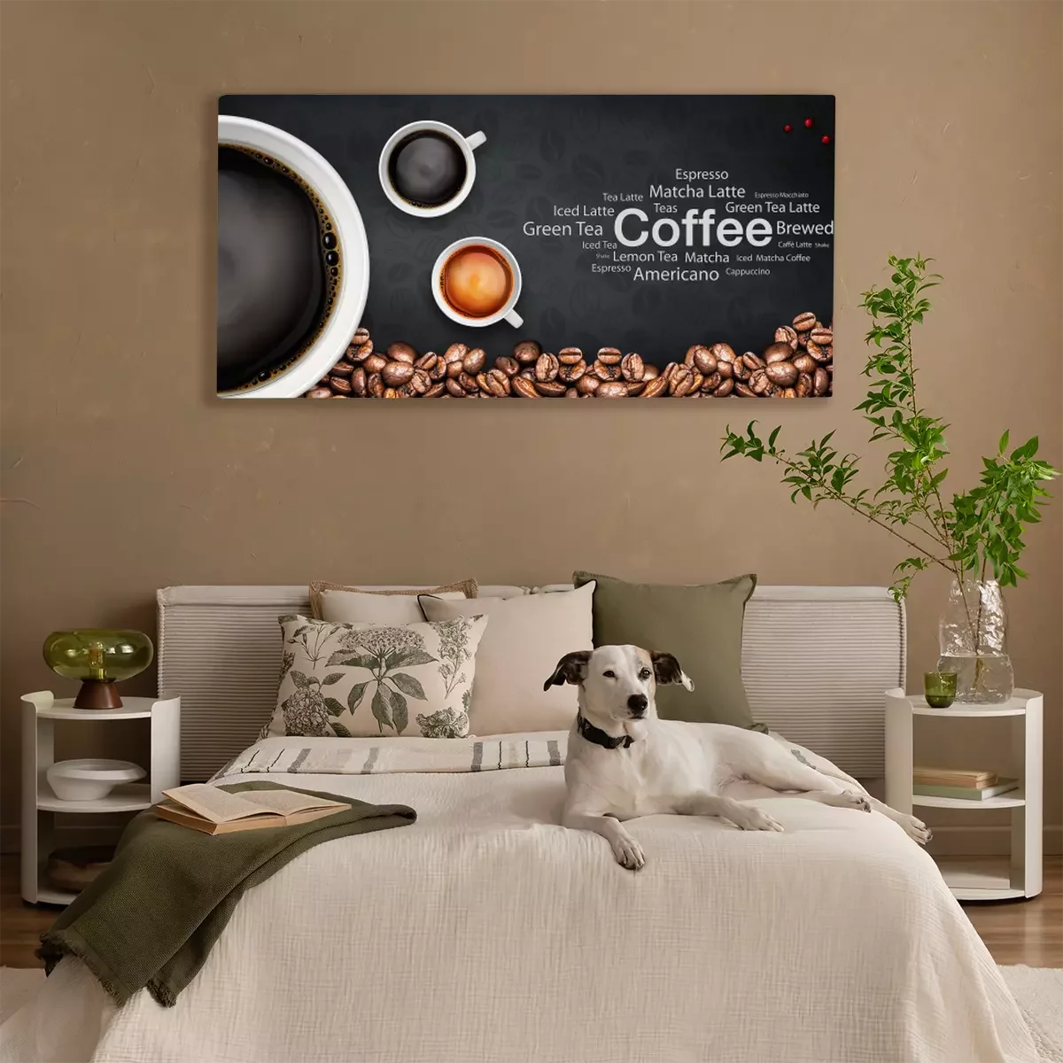 Bild Hintergrund Kaffeebohnen und Tassen mit Aufschriften