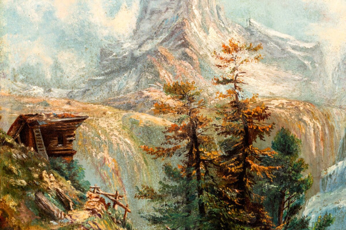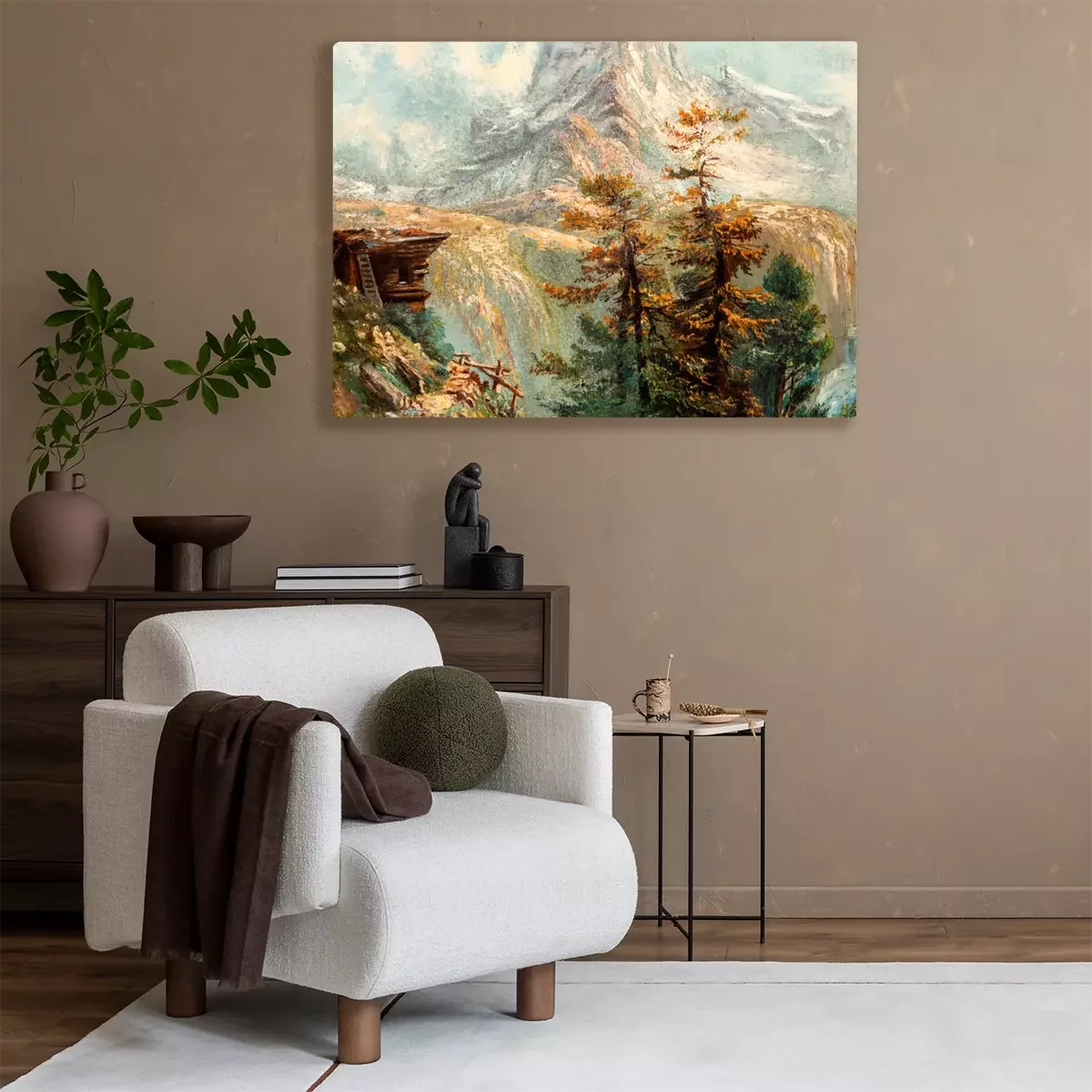 Bild: Holzhaus in den Bergen, malerische Landschaft