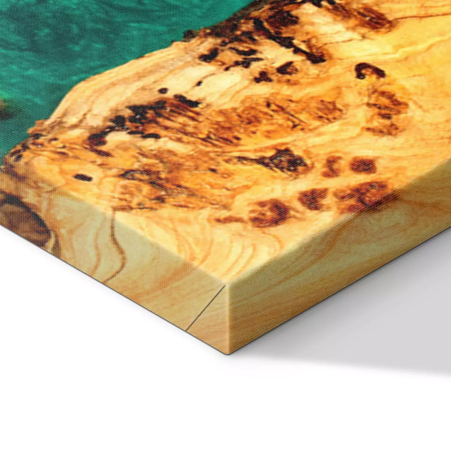 Das Motiv wird auf eine qualitativ hochwertige Leinwand gedruckt, die auf einen Blendrahmen gezogen wird. Da der Aufdruck die Seitenkanten bedeckt, muss das Bild nicht zusätzlich eingerahmt werden. Wir empfehlen außerdem Kompositionen aus mehreren Bildern, die ein harmonisches Ganzes bilden.