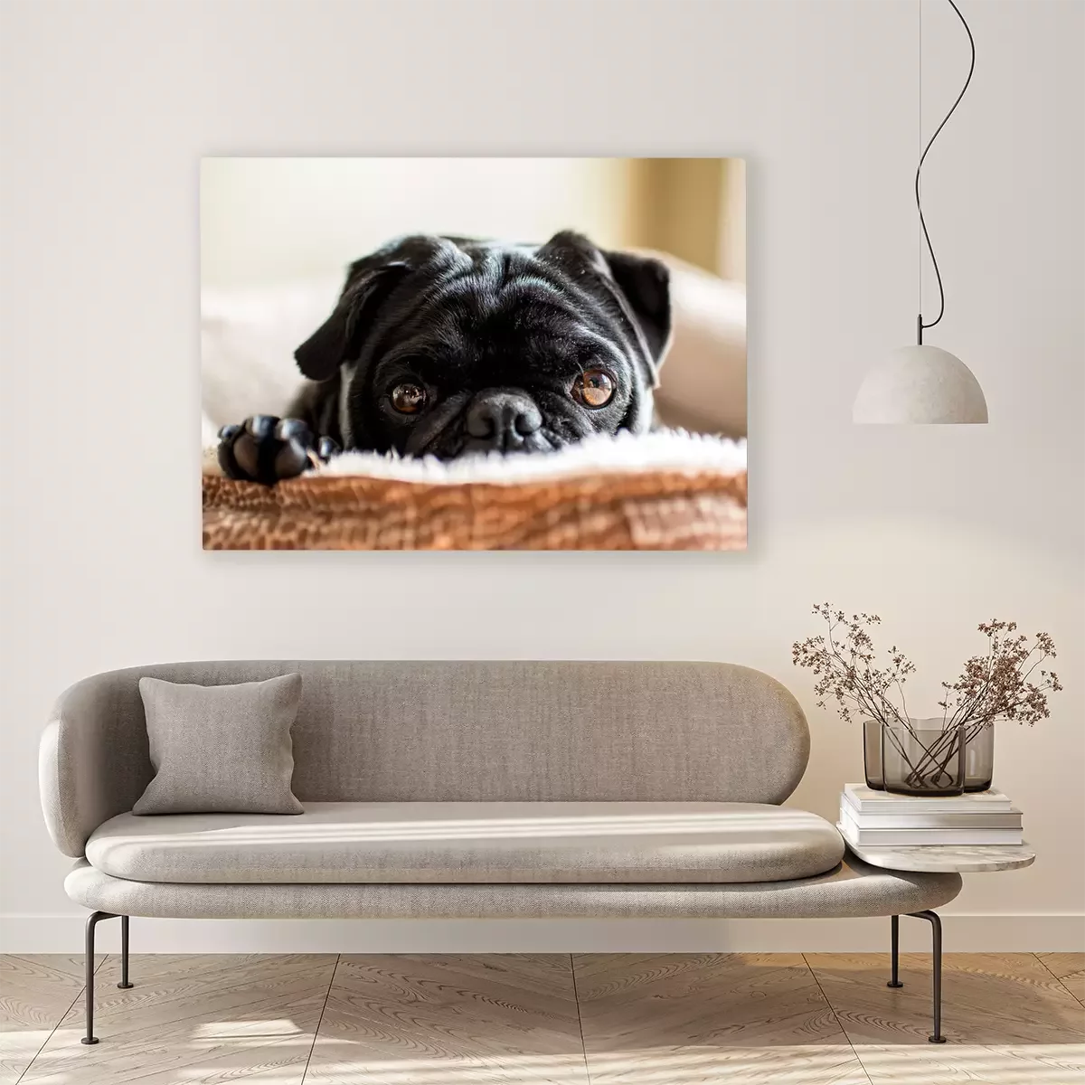 Das Motiv wird auf eine qualitativ hochwertige Leinwand gedruckt, die auf einen Blendrahmen gezogen wird. Da der Aufdruck die Seitenkanten bedeckt, muss das Bild nicht zusätzlich eingerahmt werden. Wir empfehlen außerdem Kompositionen aus mehreren Bildern, die ein harmonisches Ganzes bilden.