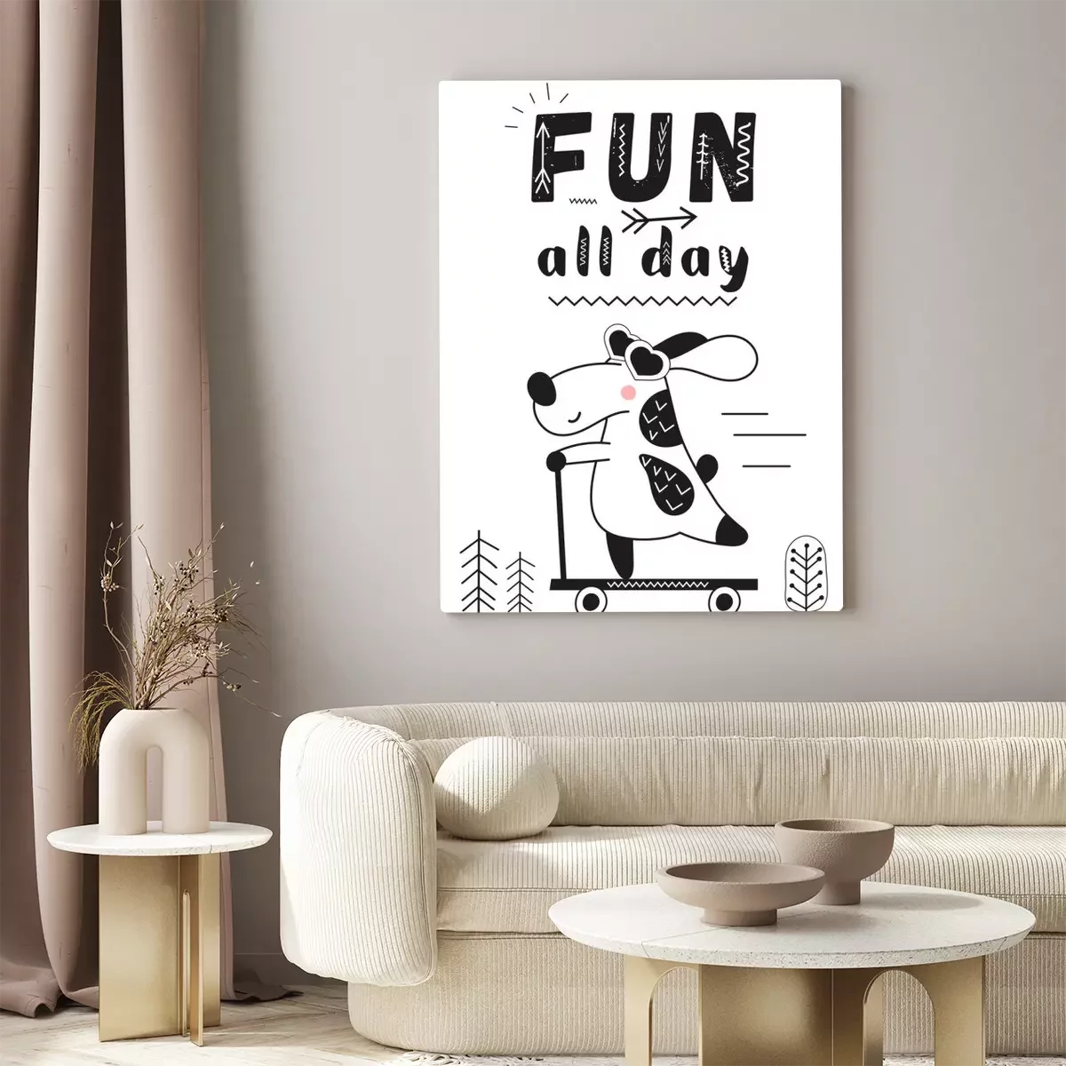 Bild: Hund auf einem Roller im skandinavischen Stil