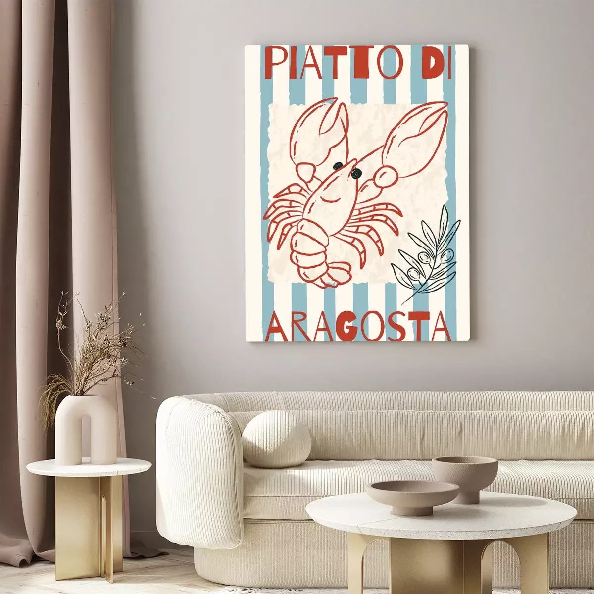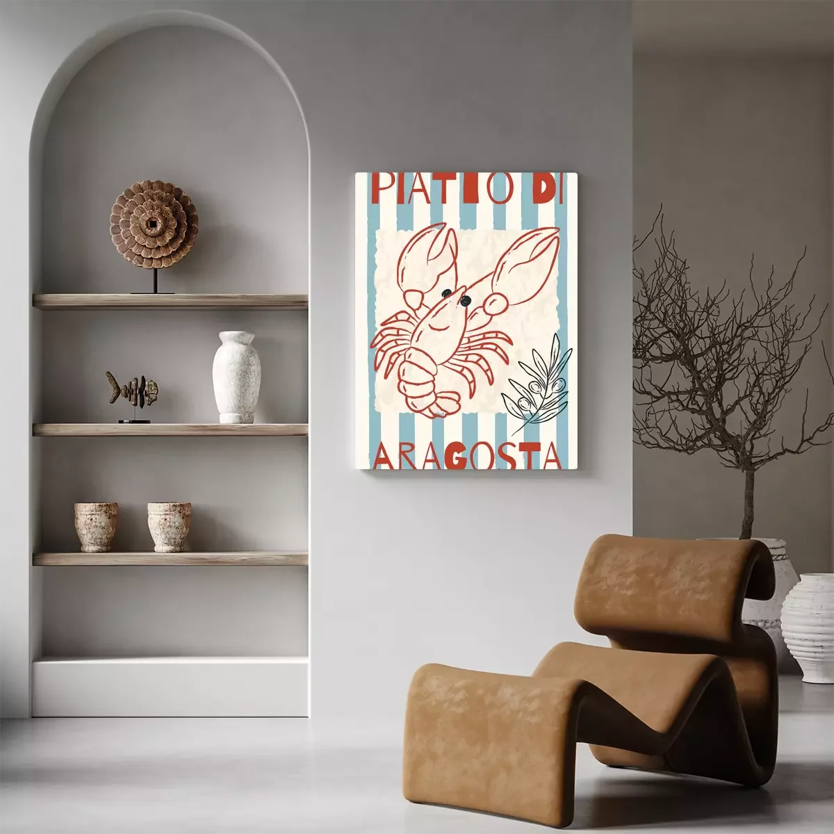 Illustration eines hummers mit einem olivenzweig auf gestreiftem hintergrund