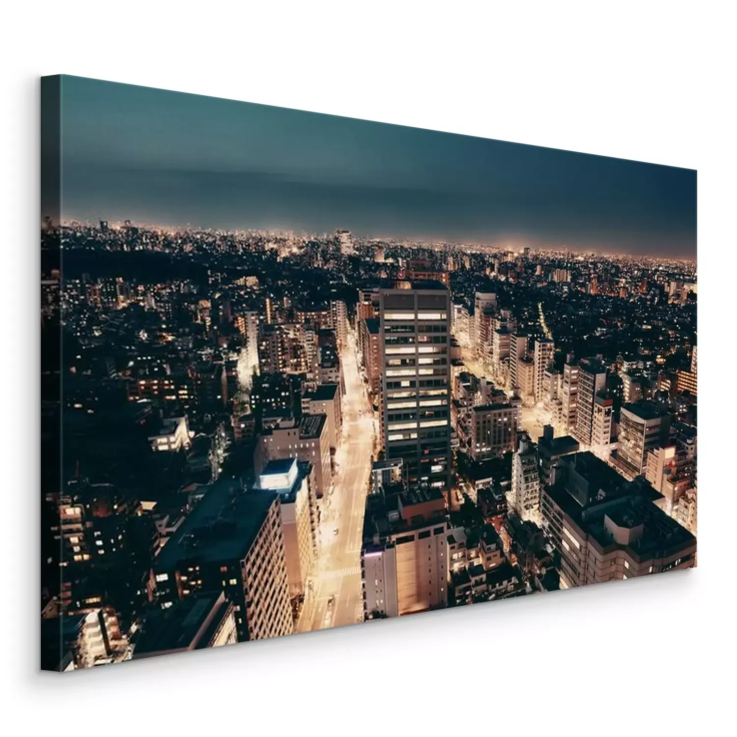 Panorama mit beleuchteten Gebäuden bei Nacht