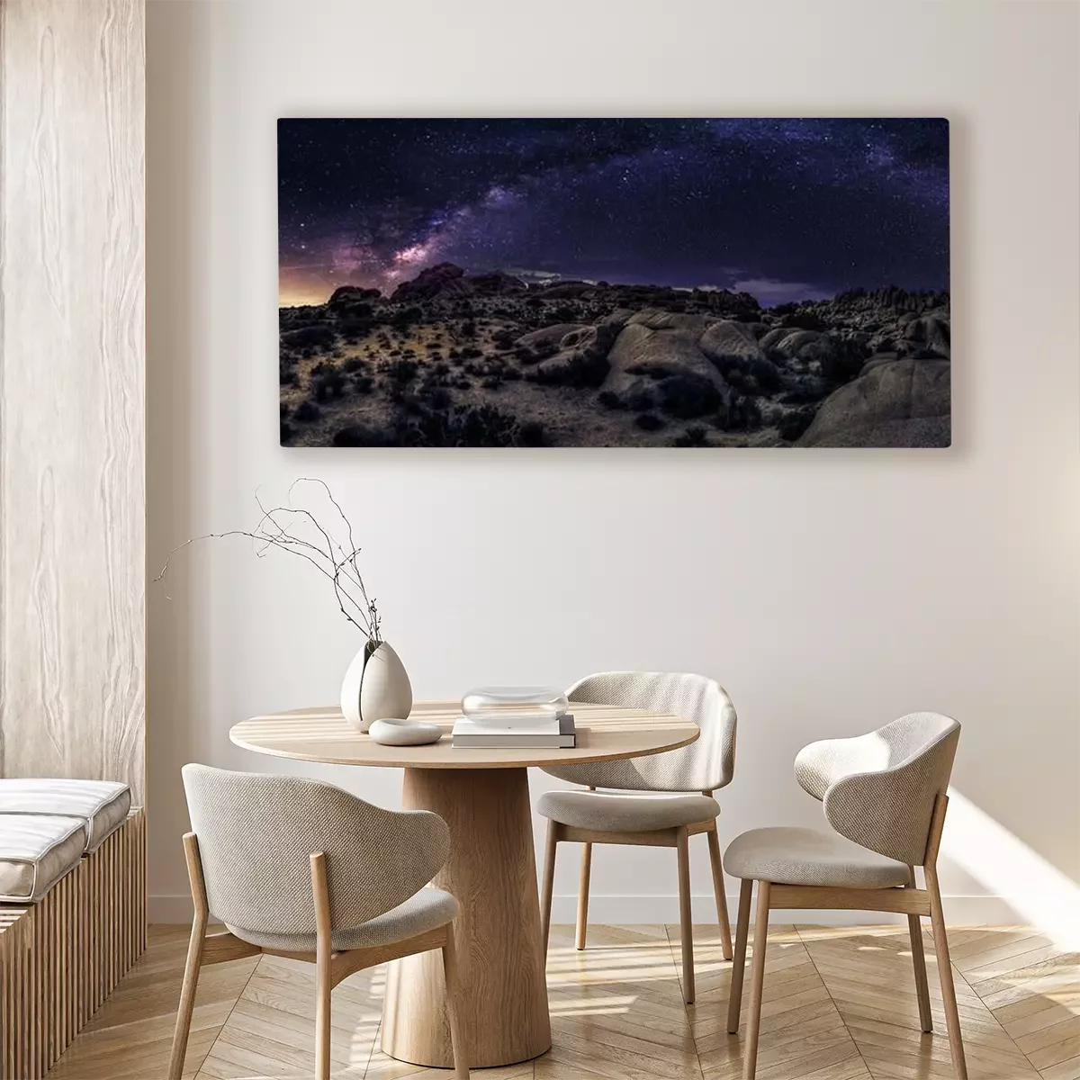 Das Motiv wird auf eine qualitativ hochwertige Leinwand gedruckt, die auf einen Blendrahmen gezogen wird. Da der Aufdruck die Seitenkanten bedeckt, muss das Bild nicht zusätzlich eingerahmt werden. Wir empfehlen außerdem Kompositionen aus mehreren Bildern, die ein harmonisches Ganzes bilden.