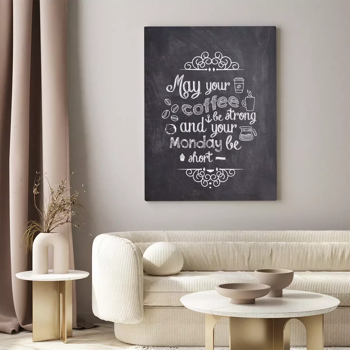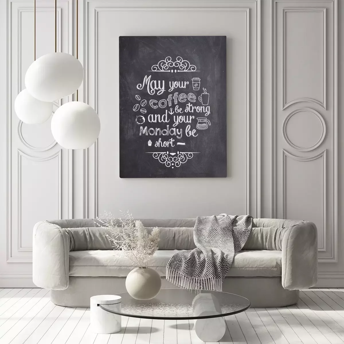 Typografisches Zitat über Kaffee auf grauem Hintergrund