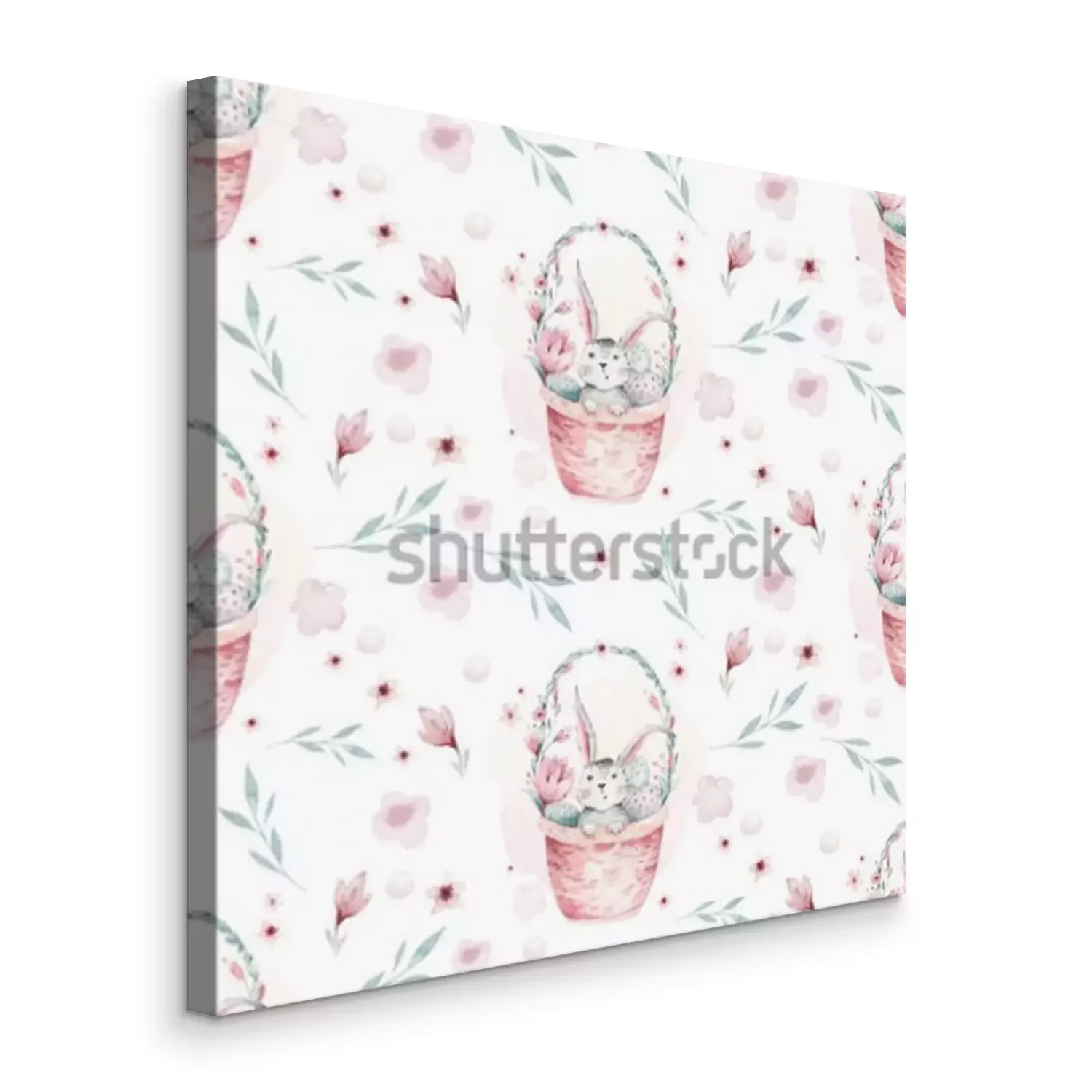 Bild Kaninchen in mit Blumen geschmückten Körbchen