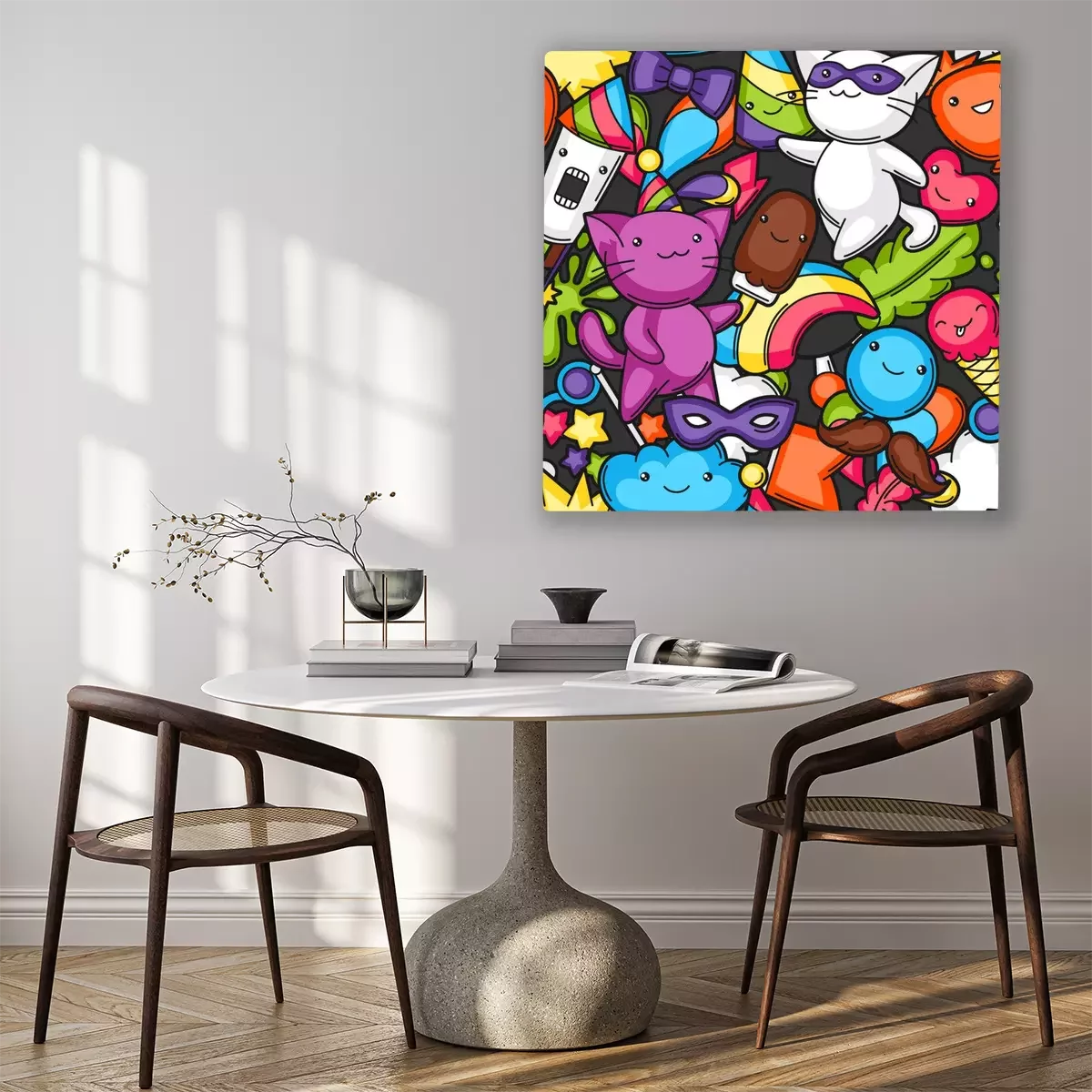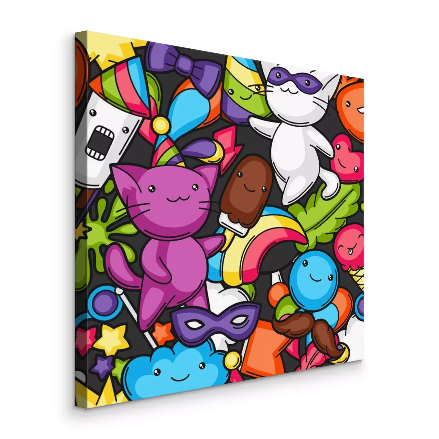 Bild: Karneval Partei kawaii nahtlose Muster. Nette Katzen, Dekorationen für Feiern, Objekte und Symbole
