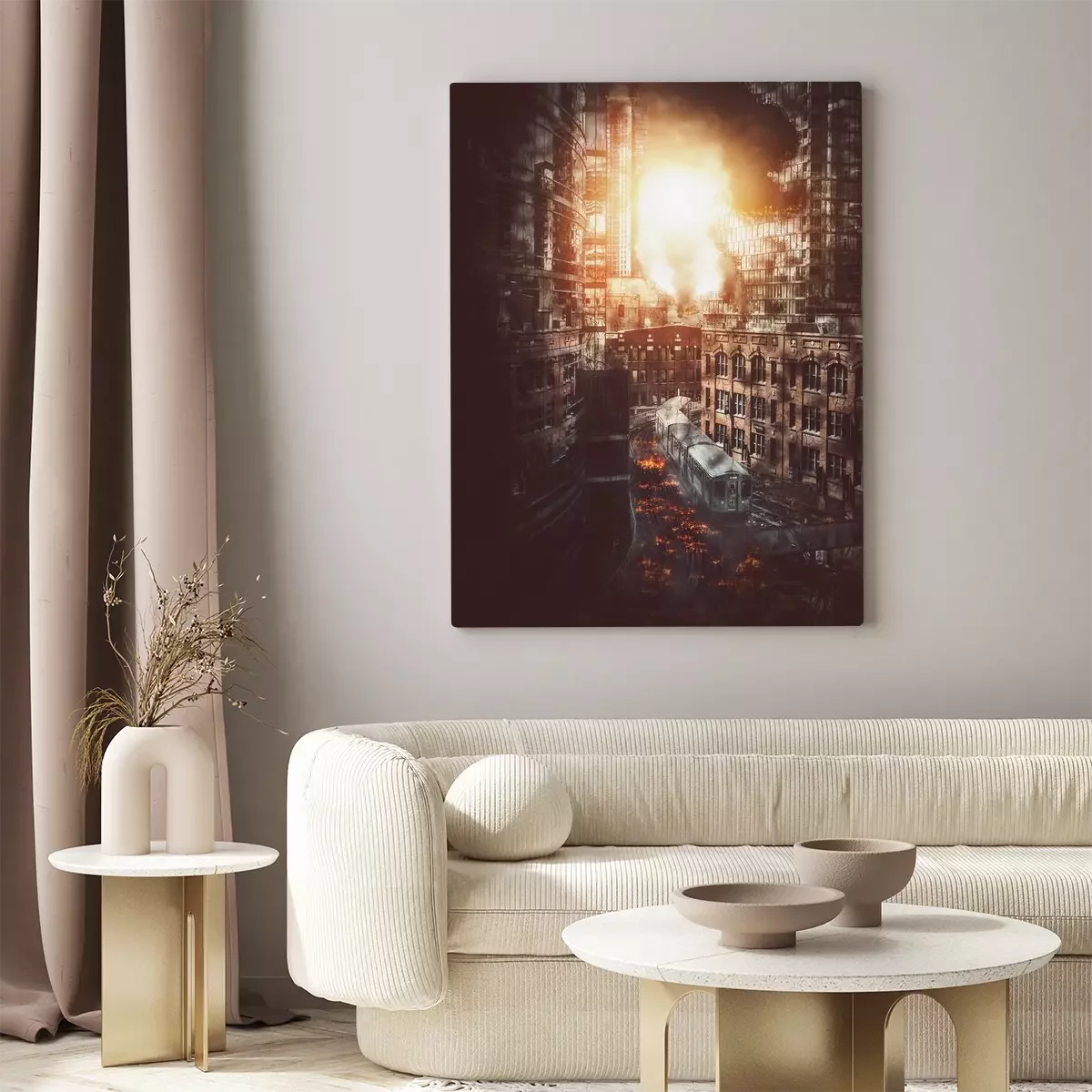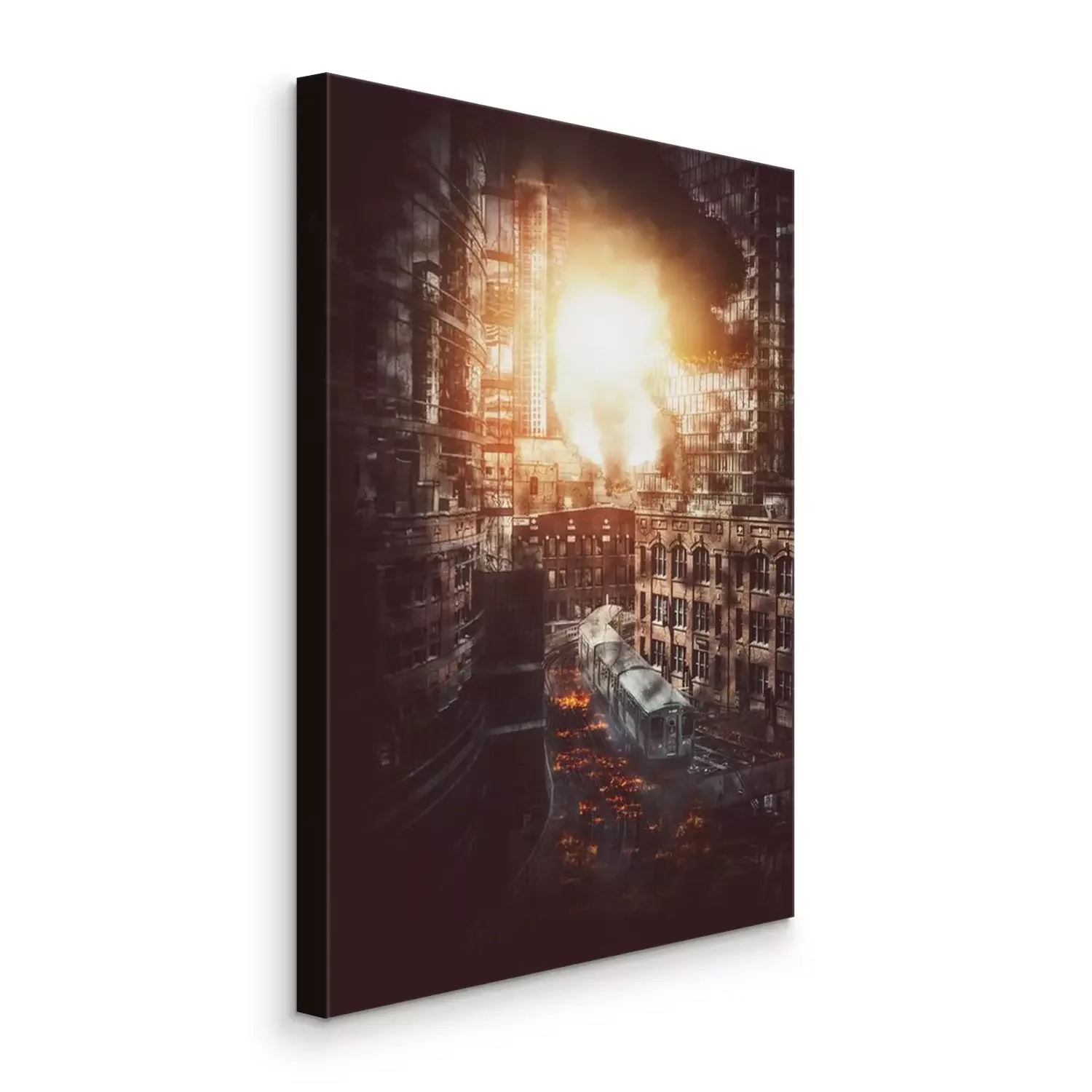 Bild Katastrophale Stadt Explosion mit brennenden Trümmern
