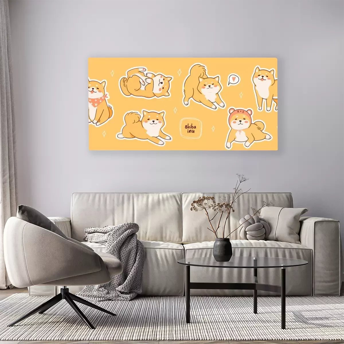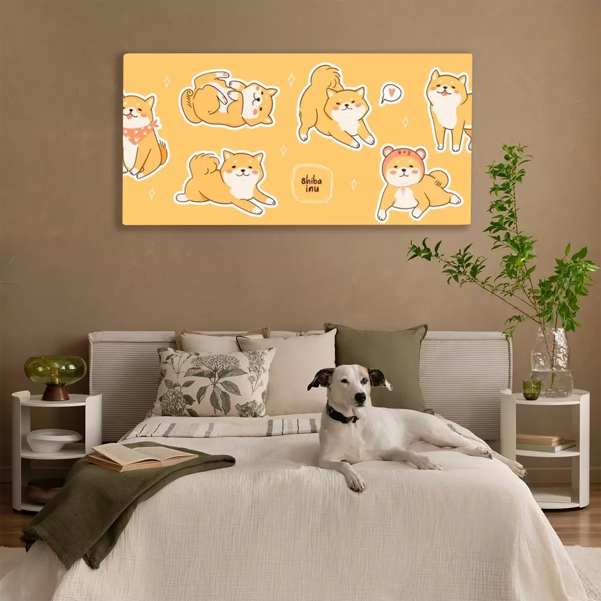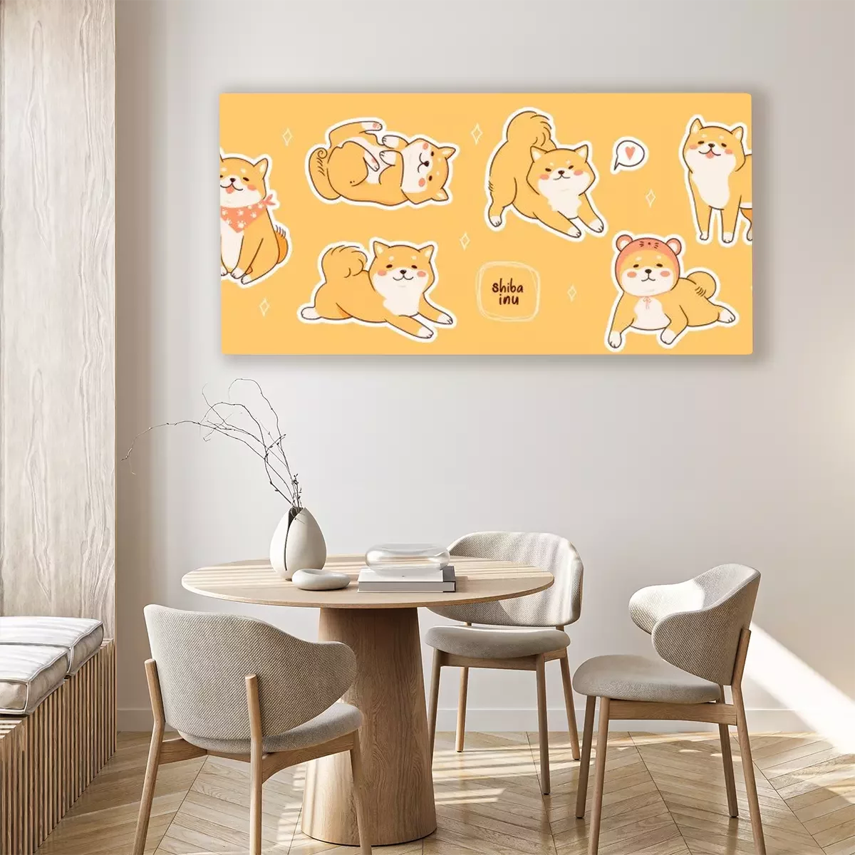 Bild Kawaii Shiba Inu dogs in various poses. Hand drawn sticker vector set. All elements are isolated