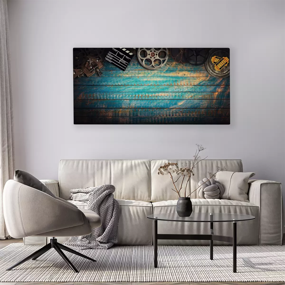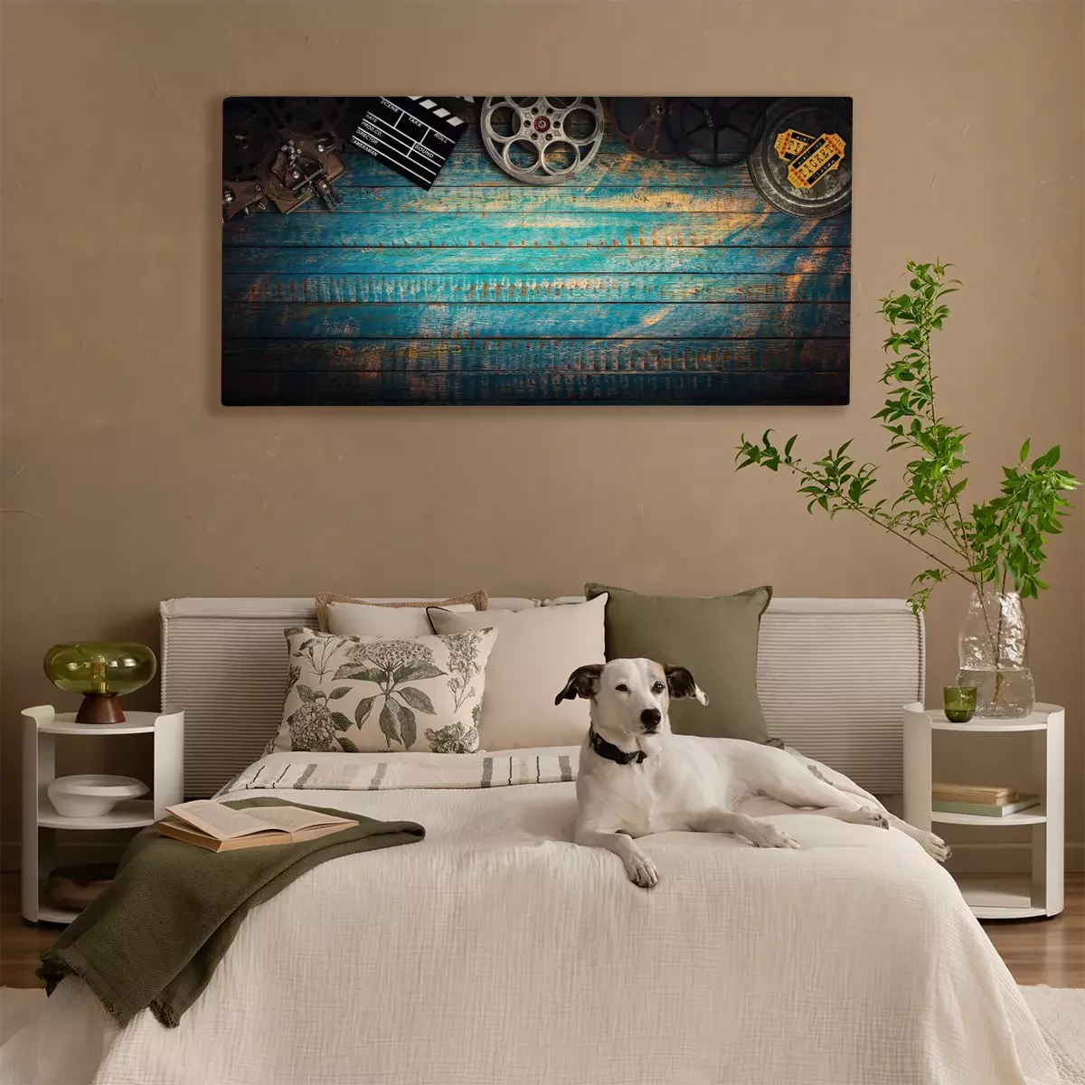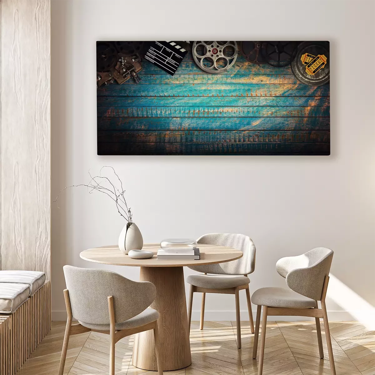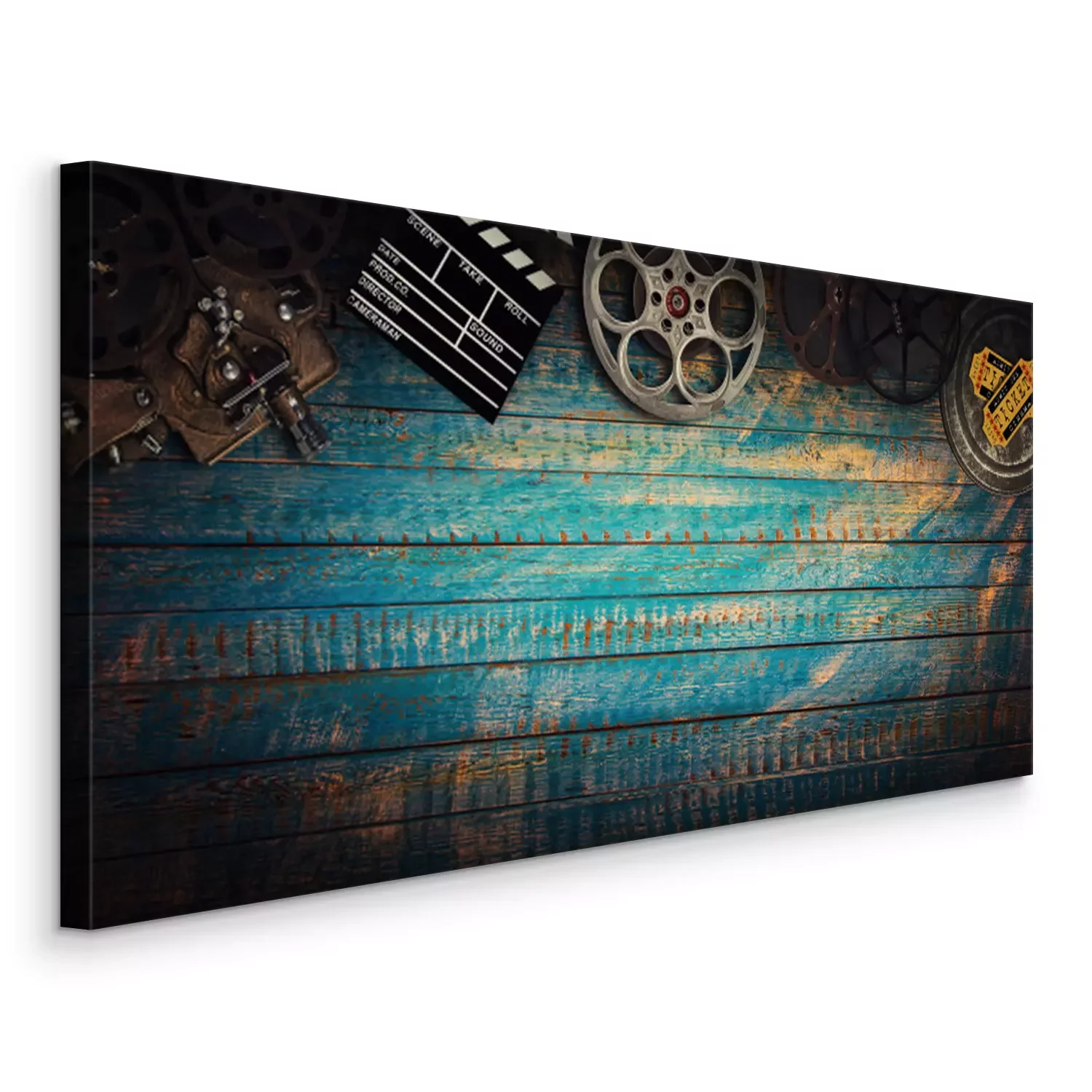 Bild: Kino-Konzept von Vintage-Filmrollen, Clapperboard und Projektor.