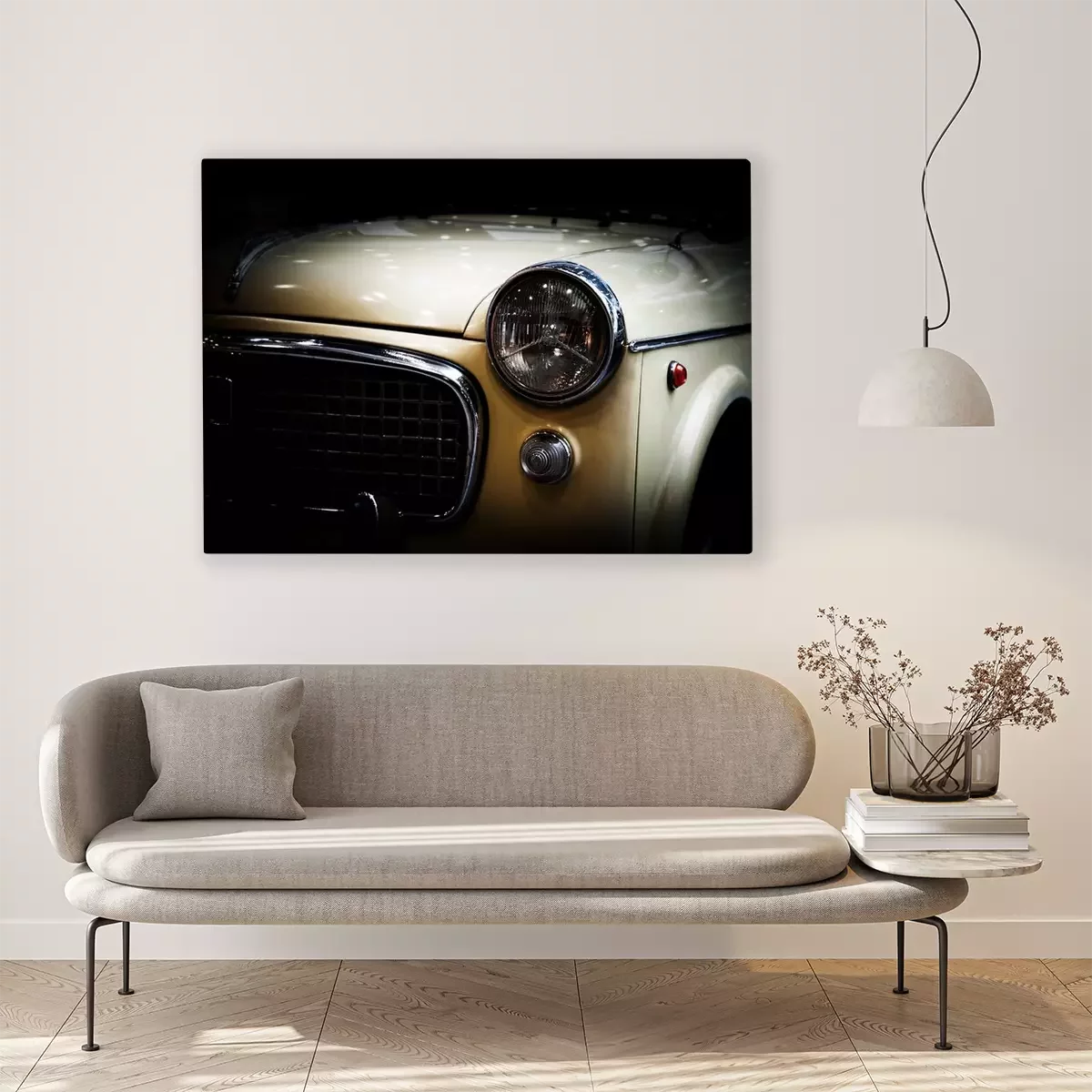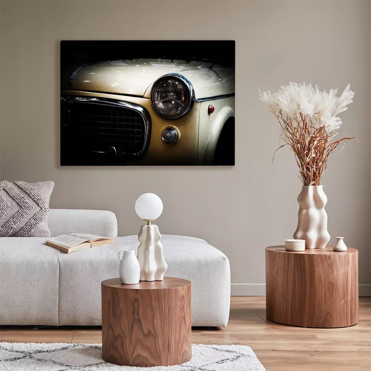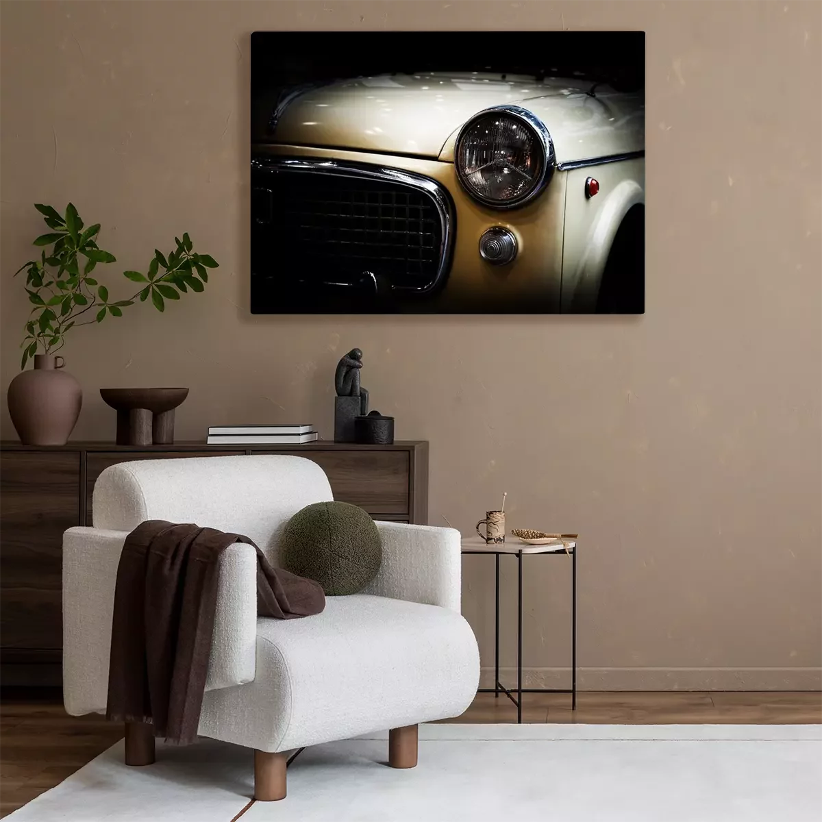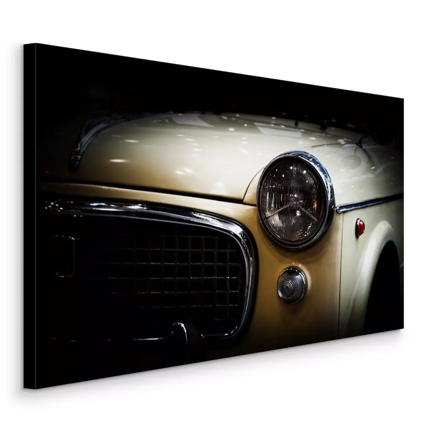 Bild: Klassisches weißes Auto auf schwarzem Hintergrund