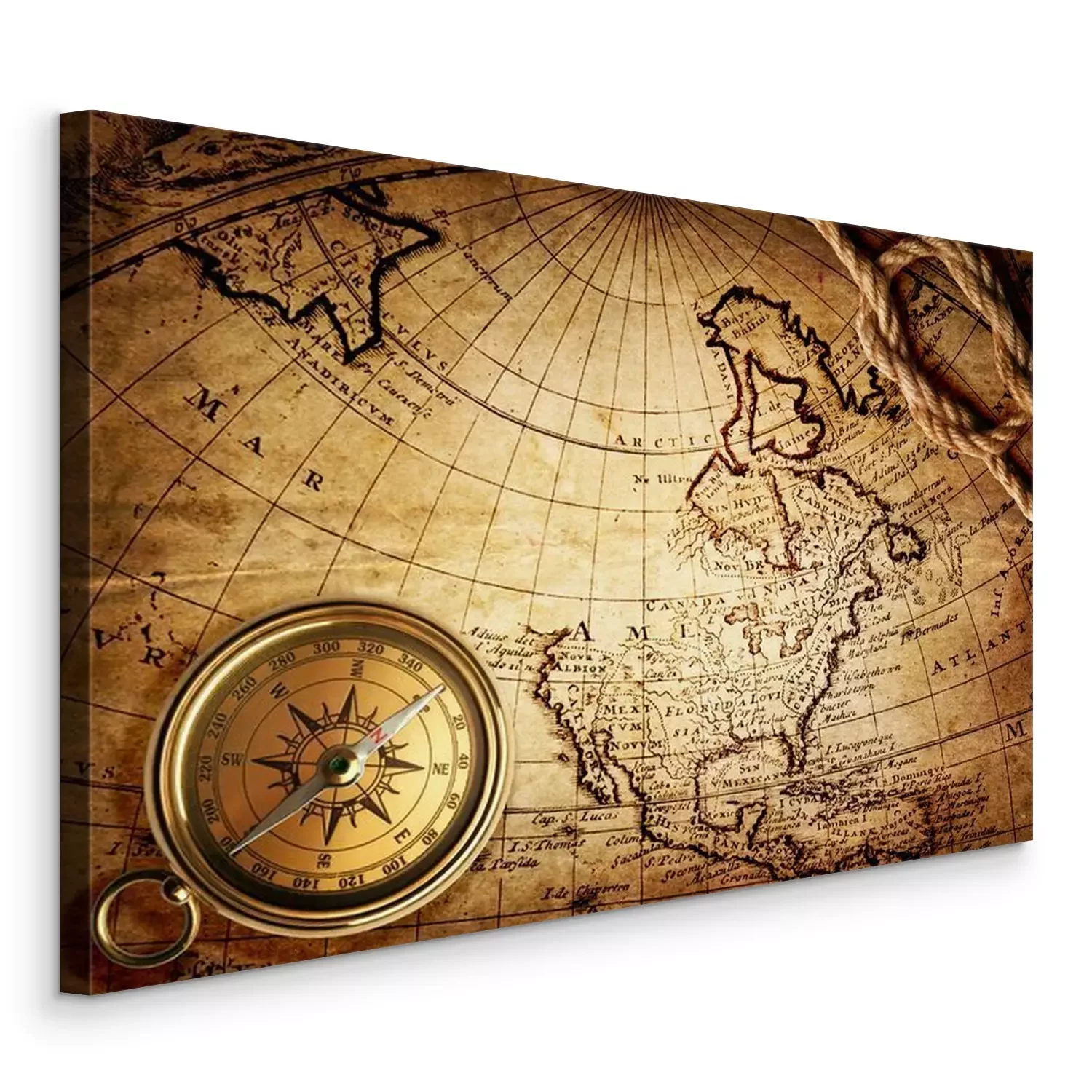 Alter Kompass, Fernglas und Seile auf einer alten Weltkarte