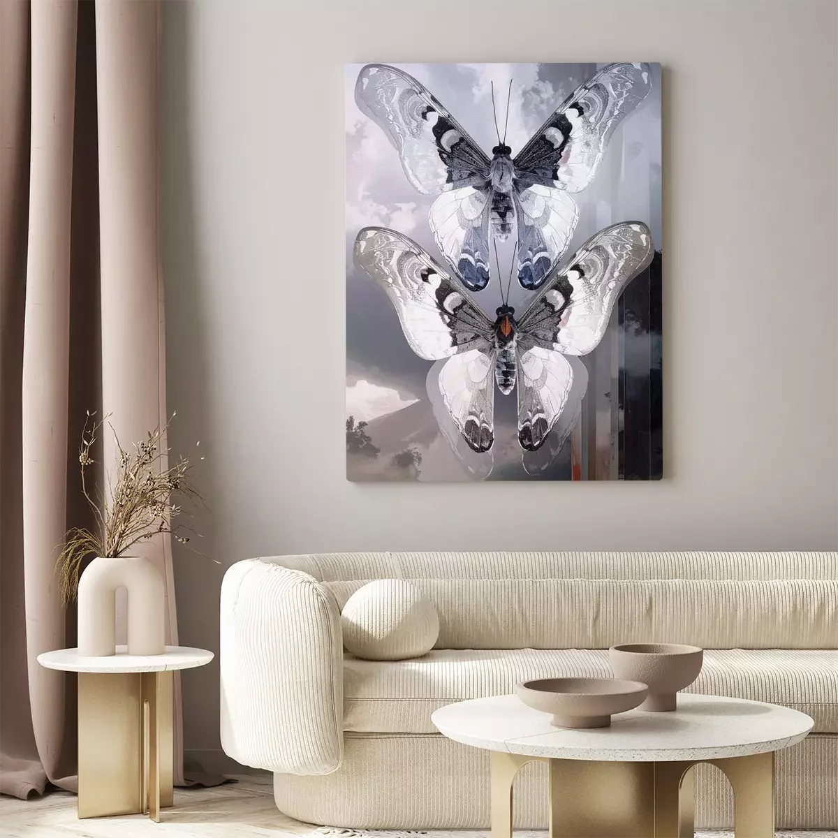 Kontrastreiche schmetterlingssilhouetten im grünen des waldes