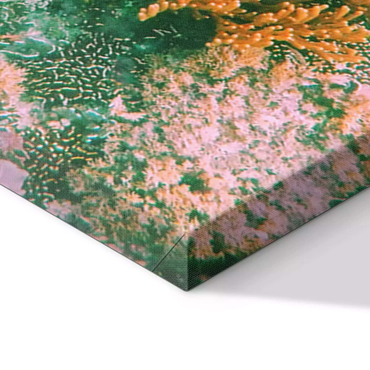 Das Motiv wird auf eine qualitativ hochwertige Leinwand gedruckt, die auf einen Blendrahmen gezogen wird. Da der Aufdruck die Seitenkanten bedeckt, muss das Bild nicht zusätzlich eingerahmt werden. Wir empfehlen außerdem Kompositionen aus mehreren Bildern, die ein harmonisches Ganzes bilden.