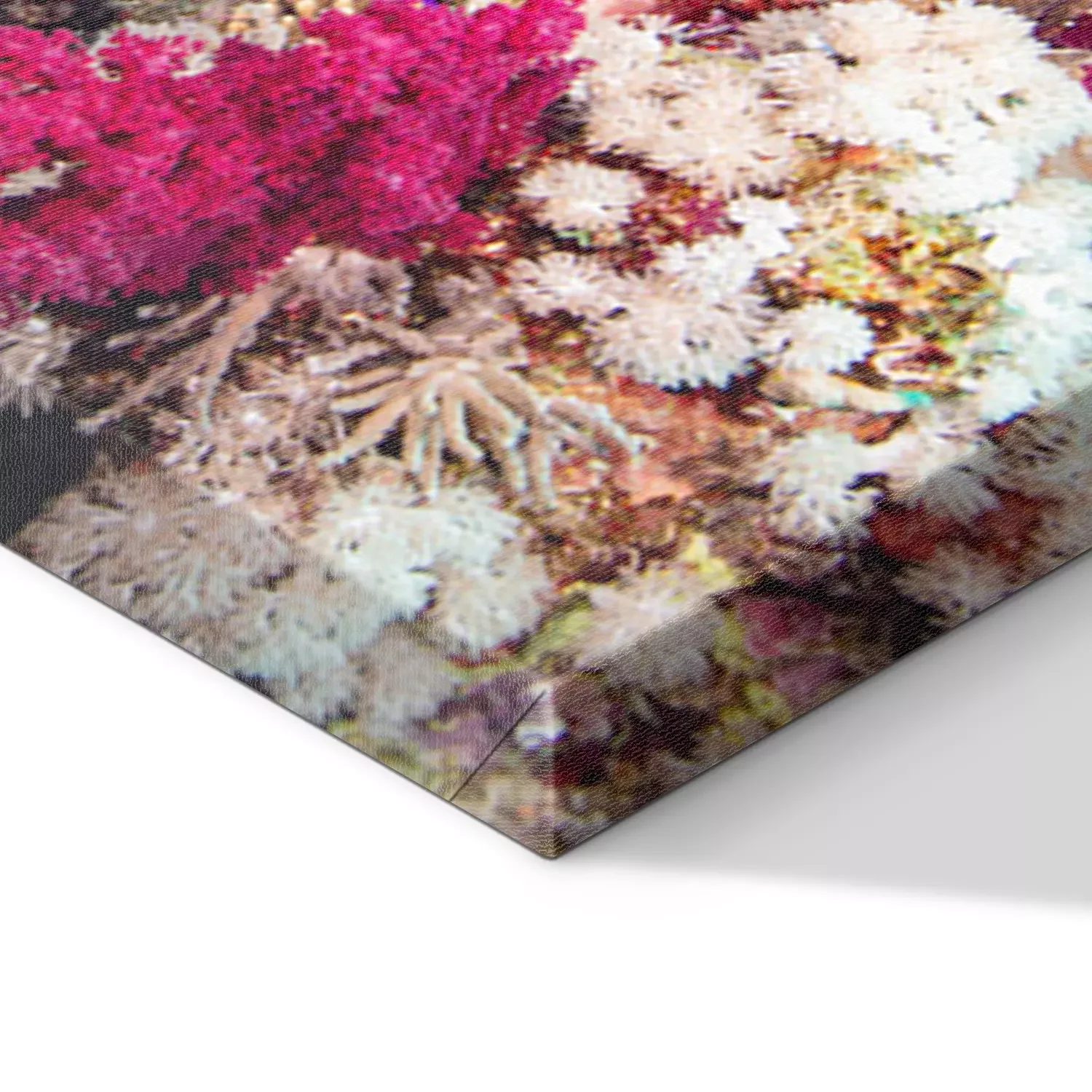 Das Motiv wird auf eine qualitativ hochwertige Leinwand gedruckt, die auf einen Blendrahmen gezogen wird. Da der Aufdruck die Seitenkanten bedeckt, muss das Bild nicht zusätzlich eingerahmt werden. Wir empfehlen außerdem Kompositionen aus mehreren Bildern, die ein harmonisches Ganzes bilden.