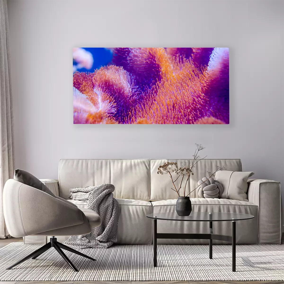 Das Motiv wird auf eine qualitativ hochwertige Leinwand gedruckt, die auf einen Blendrahmen gezogen wird. Da der Aufdruck die Seitenkanten bedeckt, muss das Bild nicht zusätzlich eingerahmt werden. Wir empfehlen außerdem Kompositionen aus mehreren Bildern, die ein harmonisches Ganzes bilden.