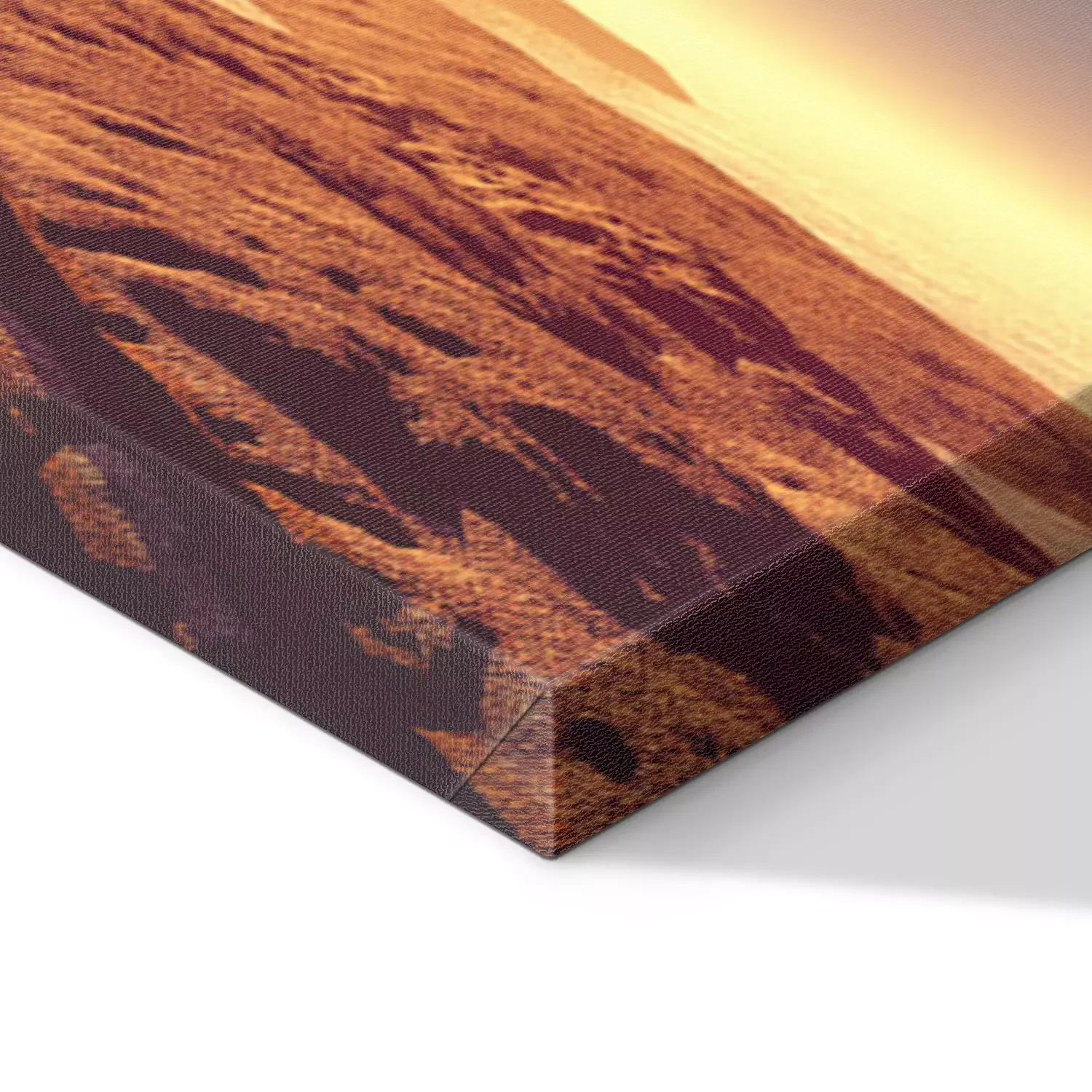 Das Motiv wird auf eine qualitativ hochwertige Leinwand gedruckt, die auf einen Blendrahmen gezogen wird. Da der Aufdruck die Seitenkanten bedeckt, muss das Bild nicht zusätzlich eingerahmt werden. Wir empfehlen außerdem Kompositionen aus mehreren Bildern, die ein harmonisches Ganzes bilden.