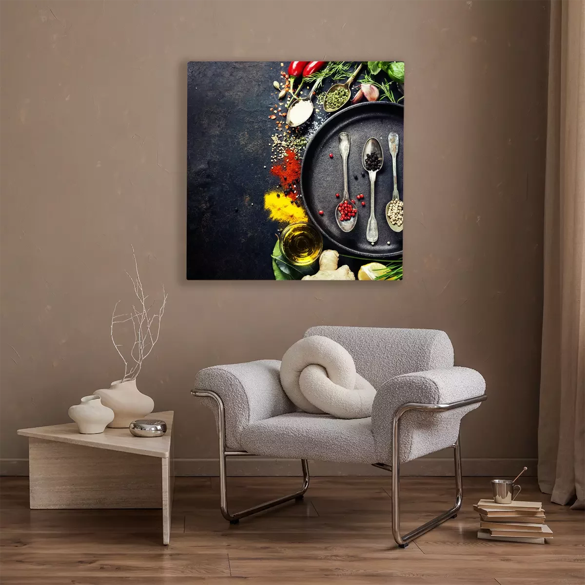 Kunstvolle Komposition mit Paprika und Kräutern