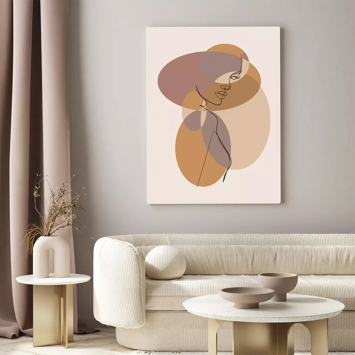 Künstlerische illustration einer frau vor einem hintergrund aus kreisen
