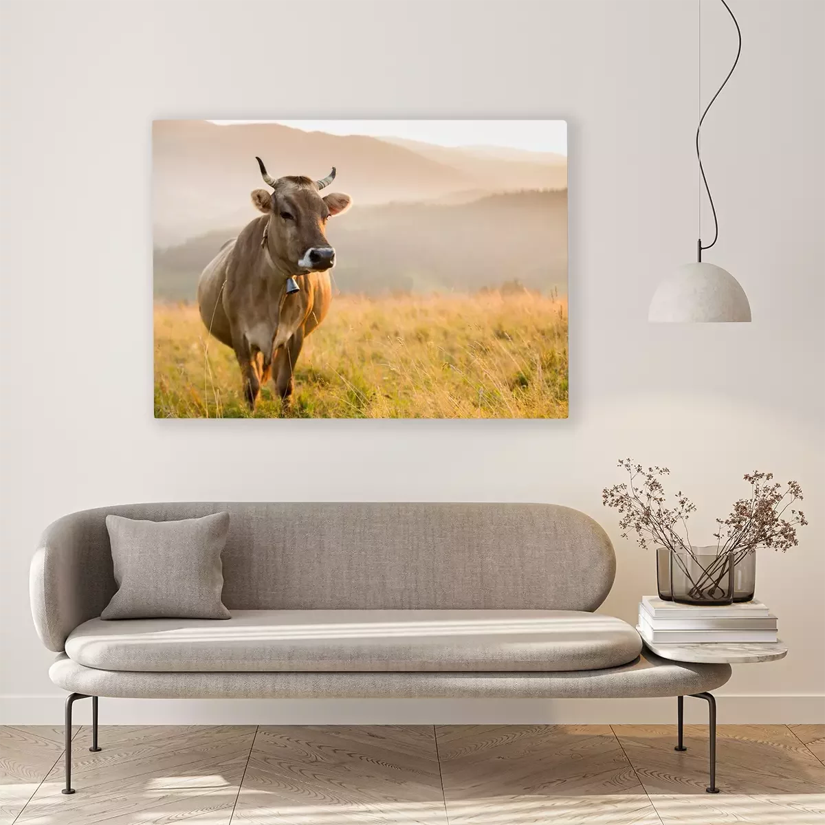 Bild Kuh auf der Weide in den Bergen bei Sonnenuntergang