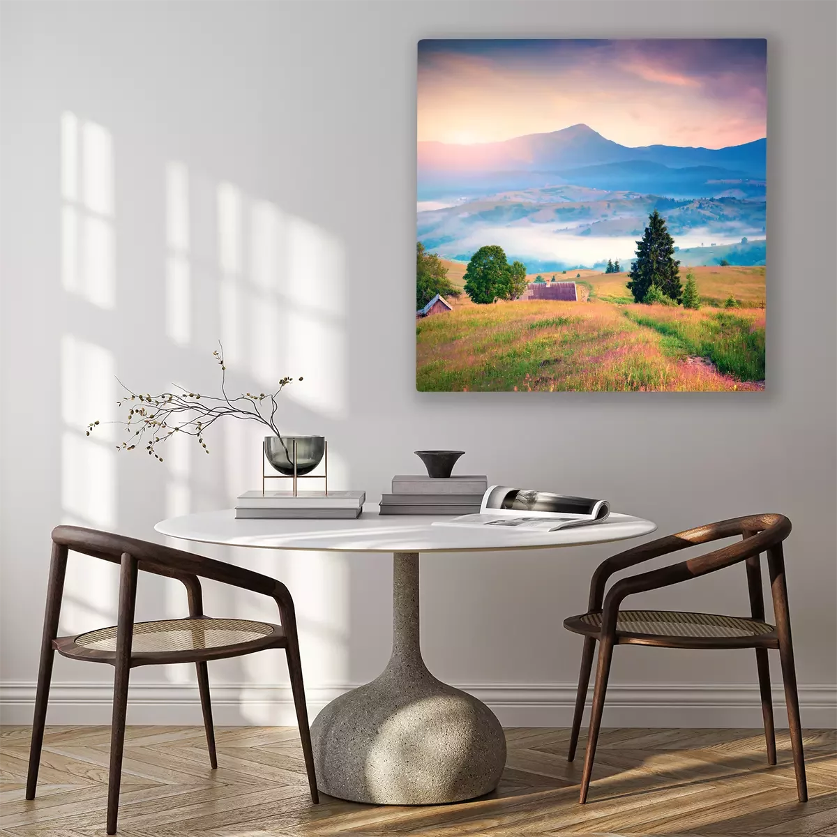Das Motiv wird auf eine qualitativ hochwertige Leinwand gedruckt, die auf einen Blendrahmen gezogen wird. Da der Aufdruck die Seitenkanten bedeckt, muss das Bild nicht zusätzlich eingerahmt werden. Wir empfehlen außerdem Kompositionen aus mehreren Bildern, die ein harmonisches Ganzes bilden.