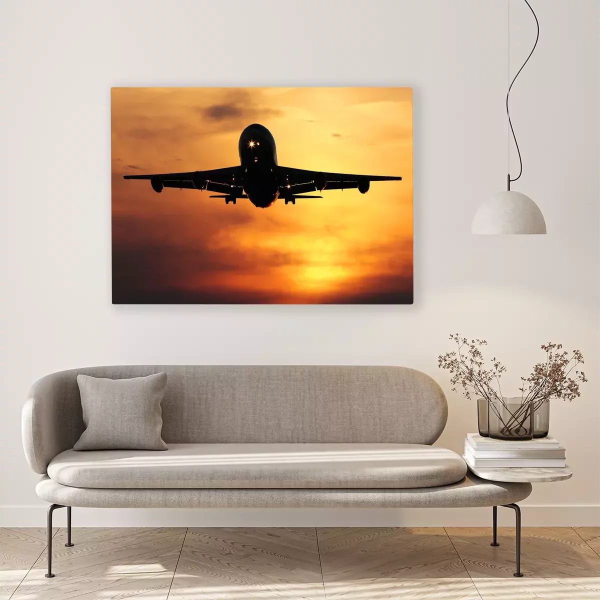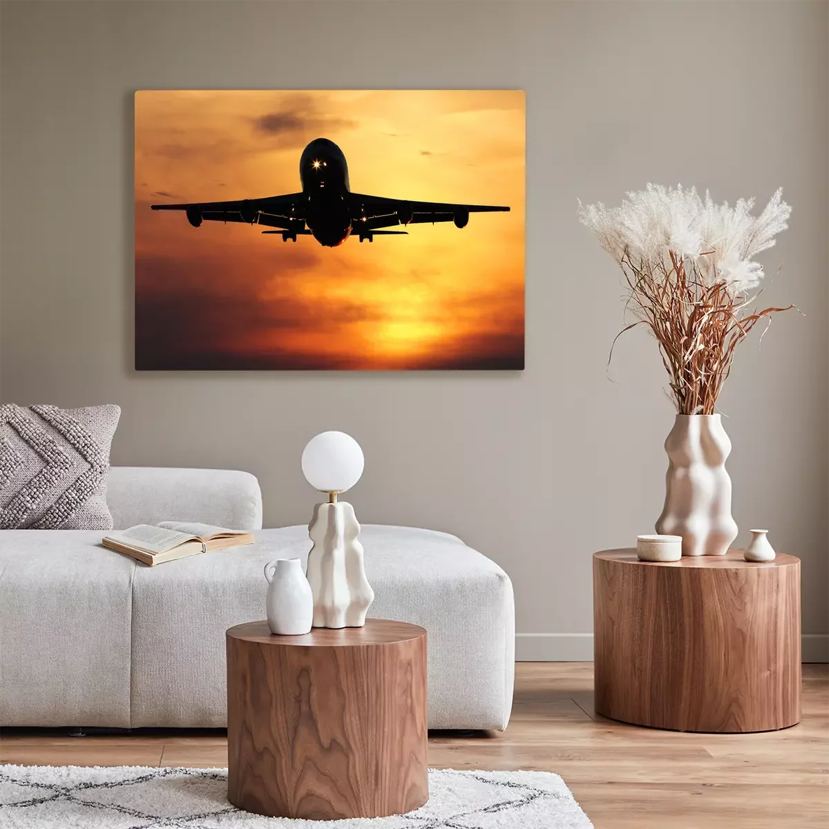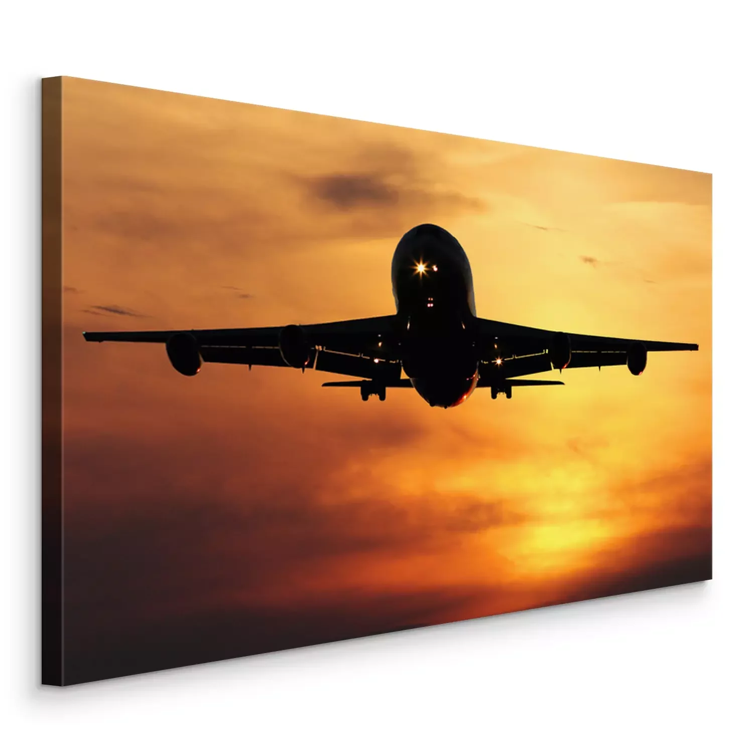 Bild Landendes Flugzeug bei Sonnenuntergang