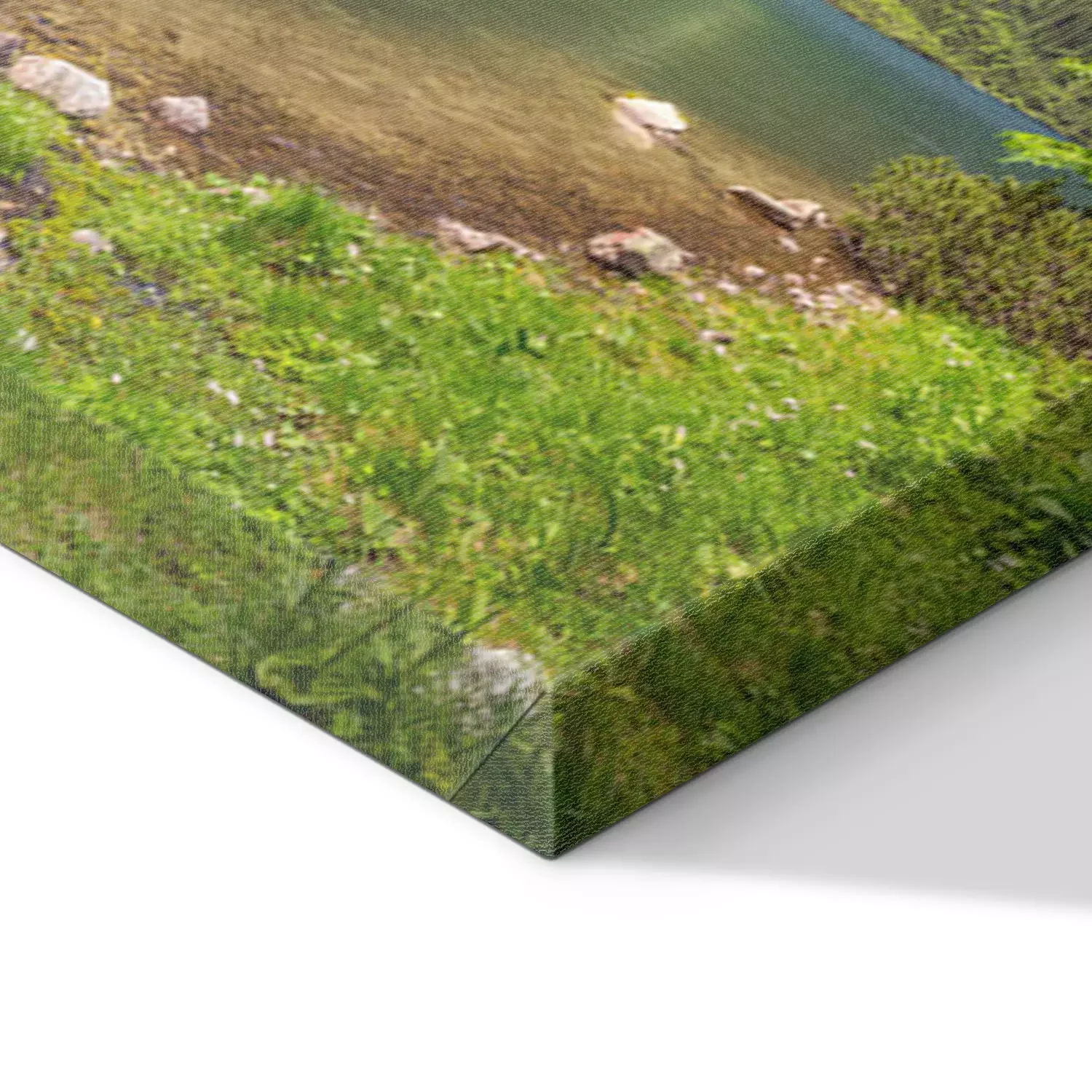 Das Motiv wird auf eine qualitativ hochwertige Leinwand gedruckt, die auf einen Blendrahmen gezogen wird. Da der Aufdruck die Seitenkanten bedeckt, muss das Bild nicht zusätzlich eingerahmt werden. Wir empfehlen außerdem Kompositionen aus mehreren Bildern, die ein harmonisches Ganzes bilden.